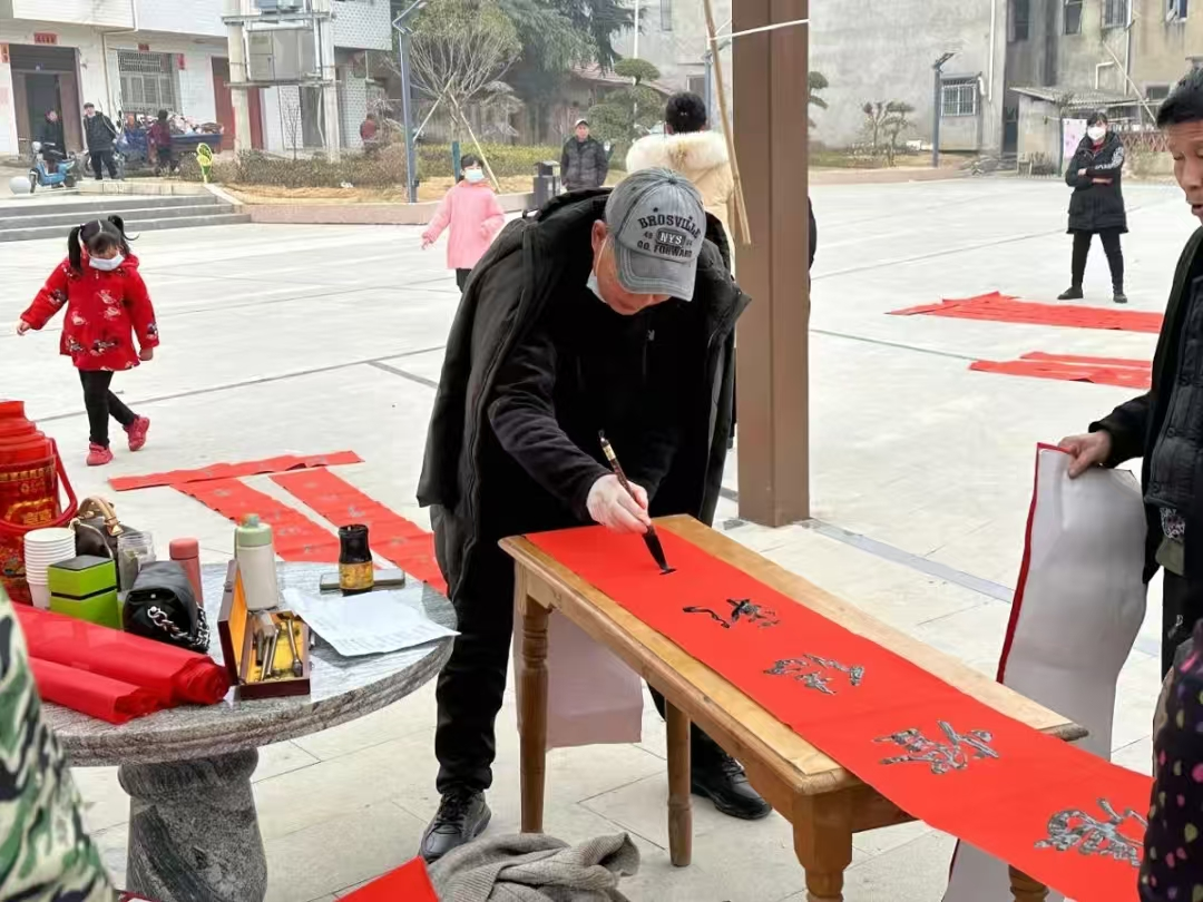 图为湖北荆门乡镇中的写对联活动。黄宇淋 供图
