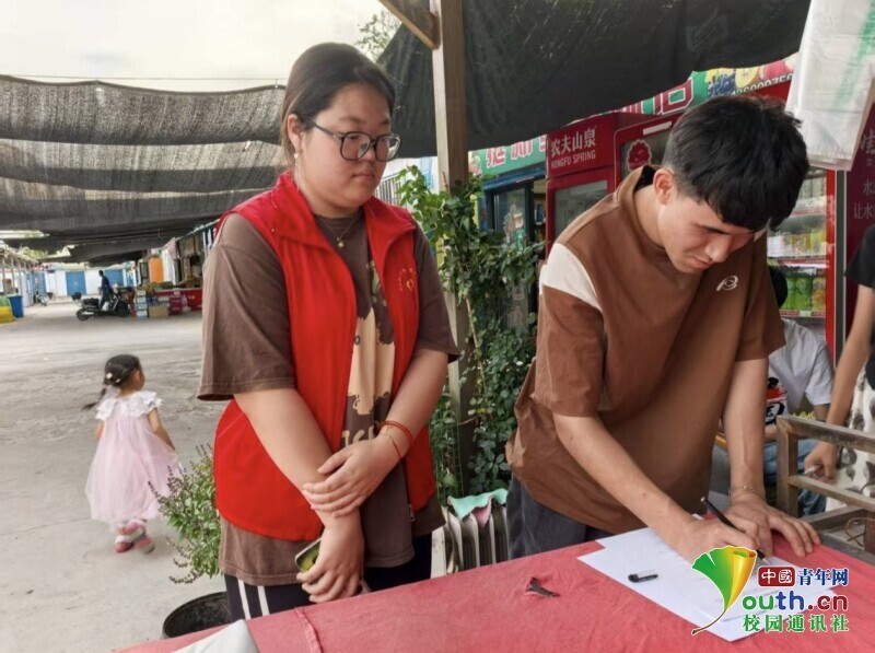 图为小队成员在内地寻找民众填写民族团结问卷。杜佳煦 供图