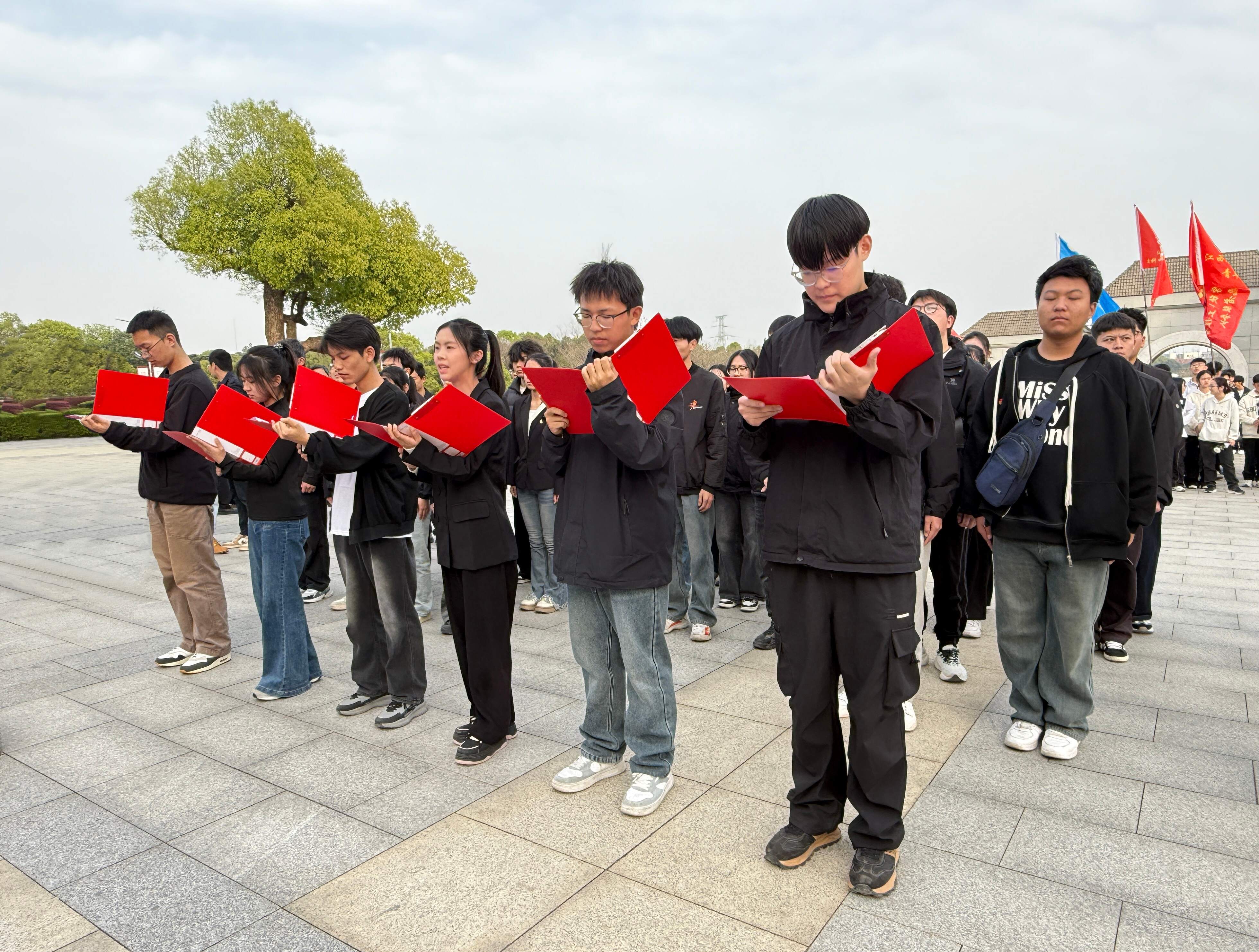 苍松翠柏掩映下的方志敏烈士陵园庄严肃穆。青年学生代表缓步上前敬献花圈,全体人员面向雕像行鞠躬礼并默哀,深切追思为革命事业英勇献身的方志敏烈士。在党(团)旗前,全体人员高举右拳,重温入党(团)誓词,铿锵誓言彰显了青年学生听党话、跟党走的坚定信念。随后,学生代表深情诵读了方志敏烈士遗作《可爱的中国》片段,深刻感受信仰的力量与时代的召唤。(通讯员 张荣 李果 王玉朗青)