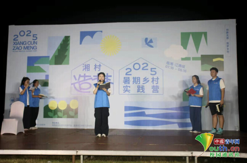 图为宣讲团成员在“湘”村造梦暑期实践营开营仪式上倾情呈现情景微短剧《逆光而行》。段旭彤 供图