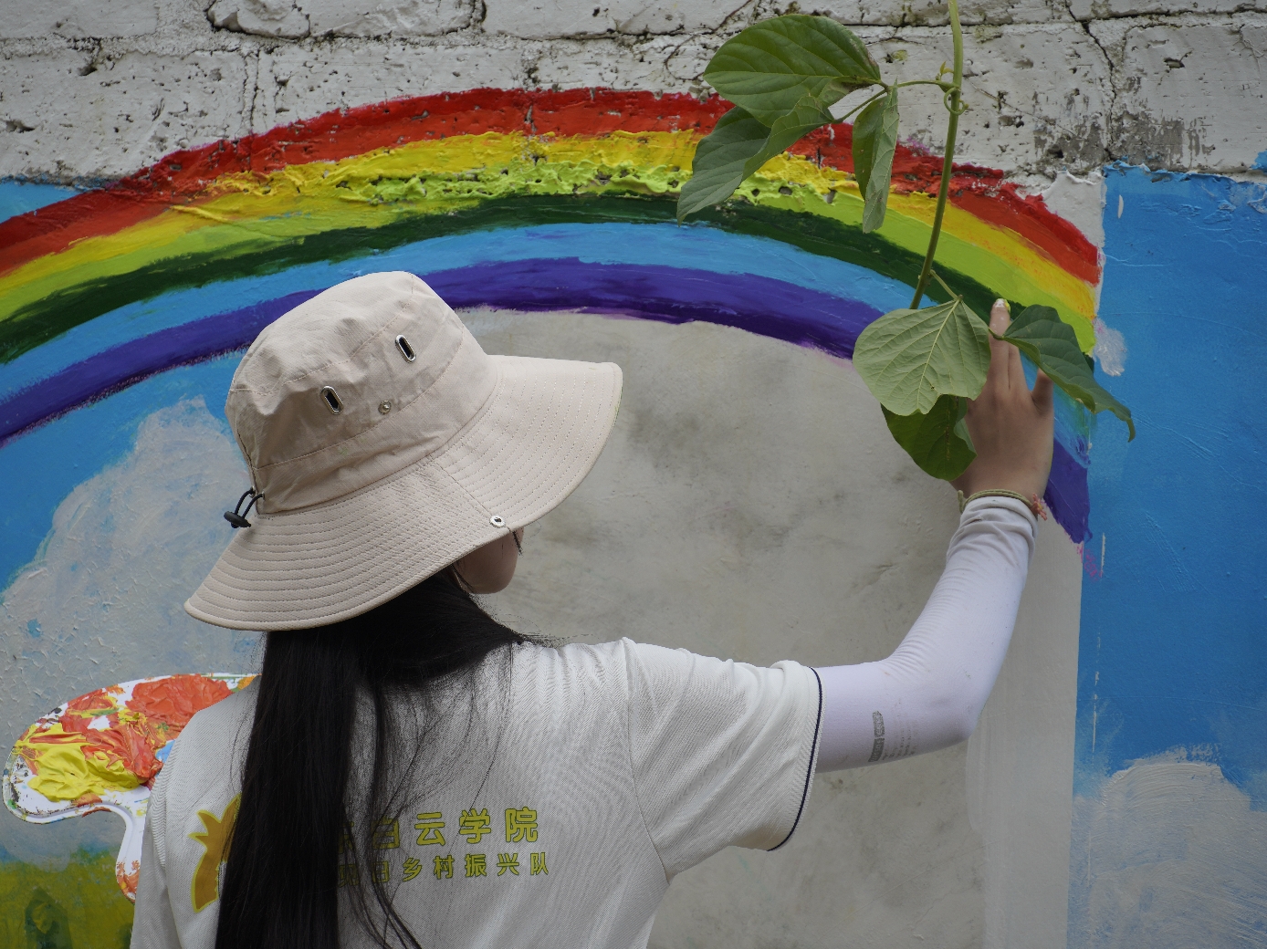 中国青年网湛江12月12日电(通讯员 原慧丽 钟文君 黄心怡)2023年是全面贯彻党的二十大精神的开局之年。4月10日至13日,习近平总书记再次亲临广东视察,发表重要讲话、作出重要指示,明确要求广东在推进中国式现代化建设中走在前列。第一站,习近平总书记来到粤西南三面环海的湛江市。同年,7月15日至30日,广东白云学院师生(“菠”云见日实践团)紧随习近平总书记的步伐来到广东湛江开展广东青年大学生“百千万工程”突击队行动,进一步贯彻党的二十大精神和落实习近平总书记关于青年工作的重要指示。用绘画点亮乡村,知党史传承红色精神,充分发挥高校优势,以实际行动助力建设生态宜居的“和美”乡村。
