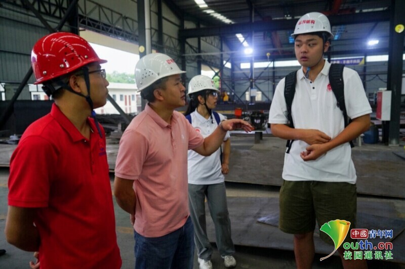 图为创信联丰化工集团有限公司负责人为“凡花”暑期实践队进行介绍公司产品。中国青年网通讯员 曾辰 供图
