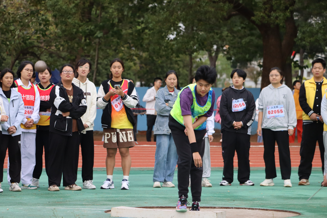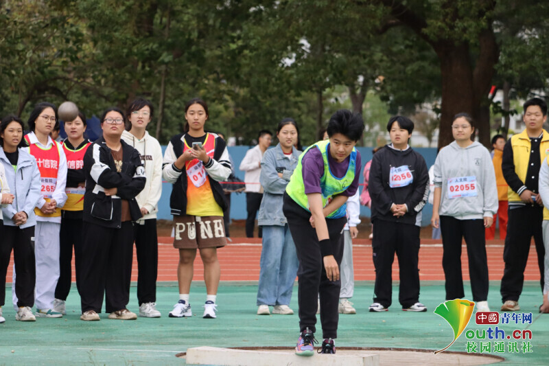 图为农学院运动员进行女子铅球比赛。中国青年网通讯员 刘羽妍 摄