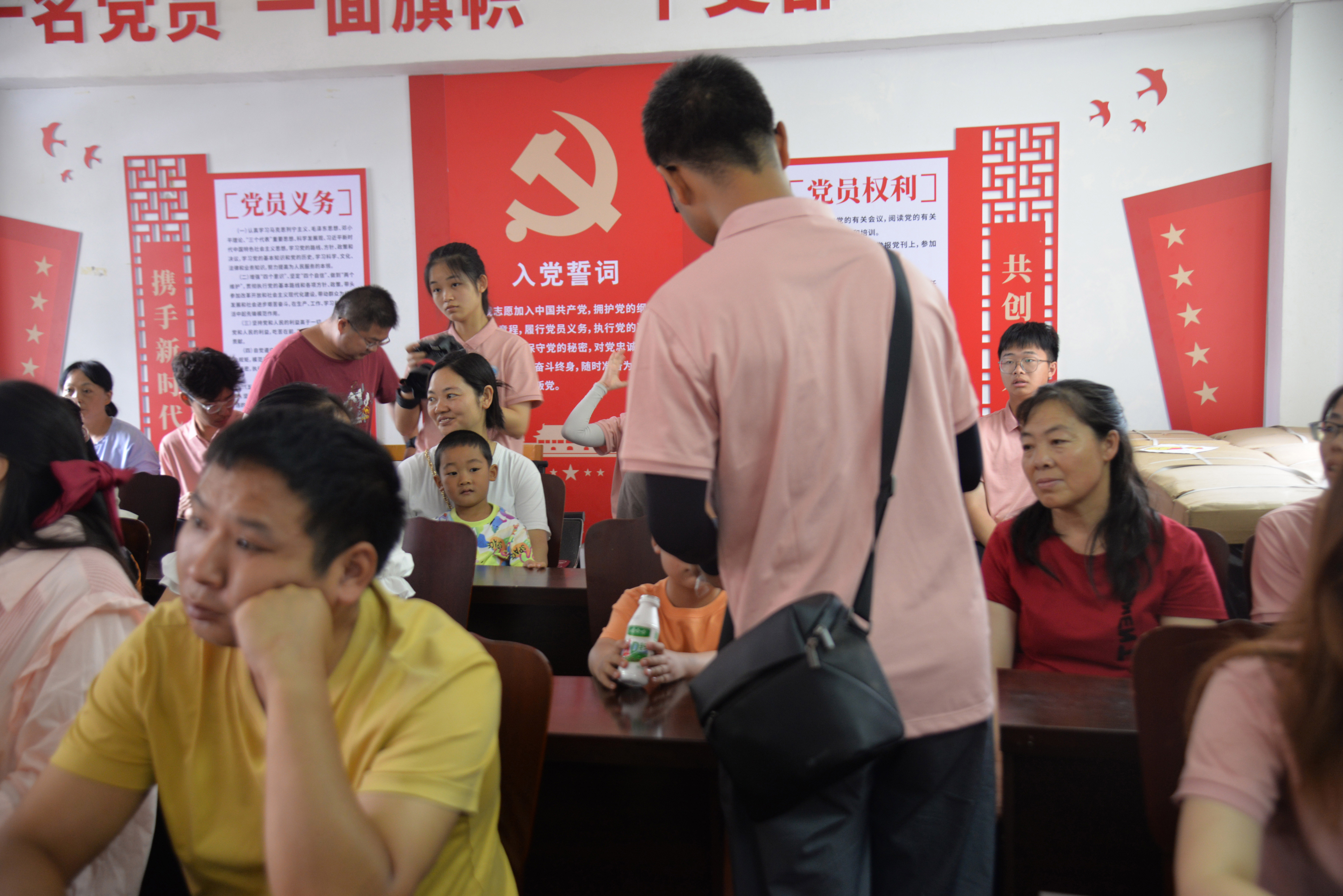图为小朋友和家长们正在参加我们组织的活动,队员正在给小朋友分发饮料。中国青年网通讯员 李雅倩 摄