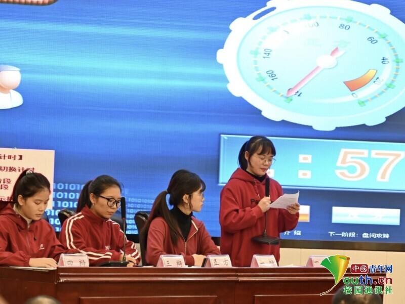 图为主持人正在介绍本次辩论赛主题,正反双方均已就位,激烈的辩论赛正式拉开帷幕。中青网通讯员 蒋昊燃 摄