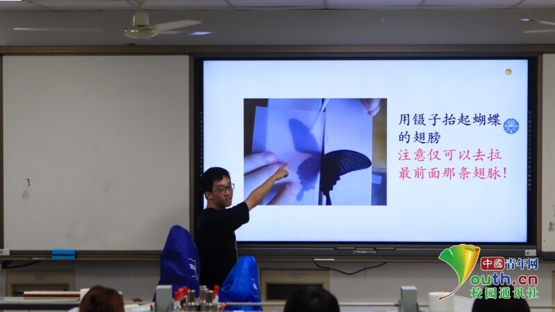 图为虎协成员正在科普昆虫标本制作知识。中国青年网通讯员 徐宗祥 供图