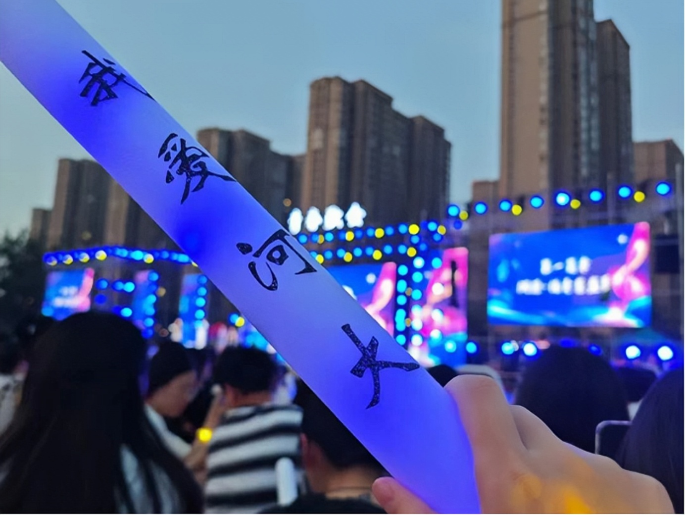 图为现场观众挥舞手中的荧光棒。刘珩 摄