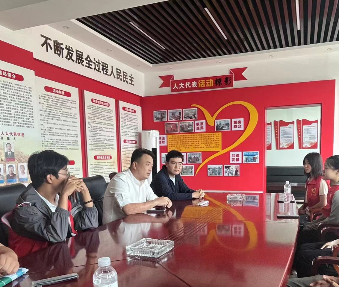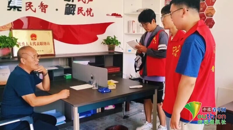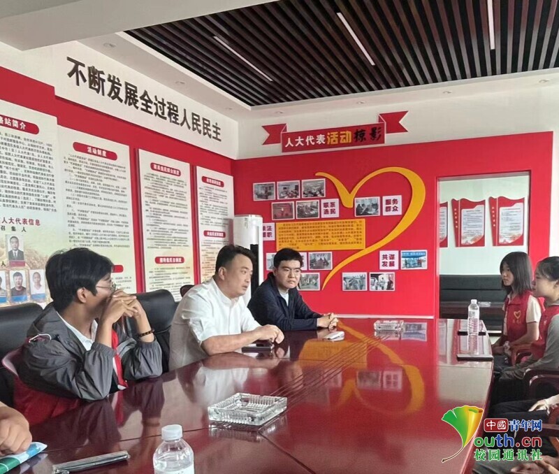 图为一亩泉镇纪委书记曹俭、团委书记李昭然与实践队交流会照片。中国青年网通讯员 任育娴 供图