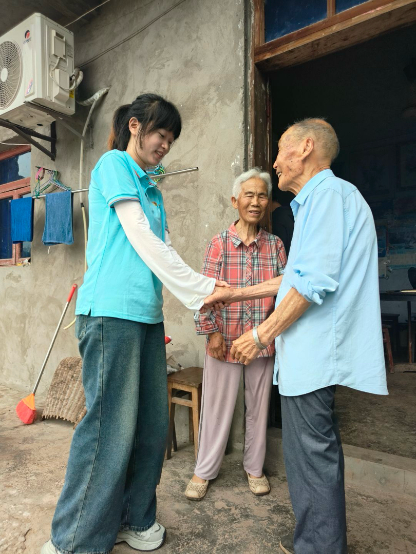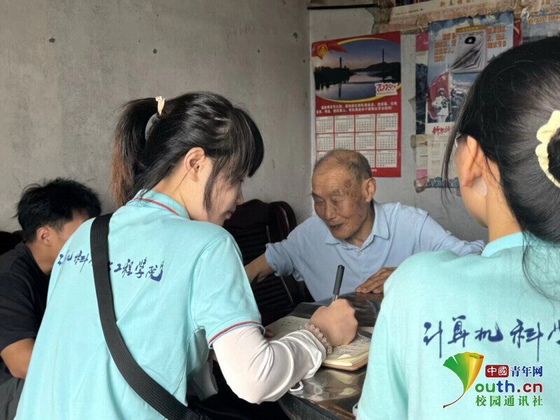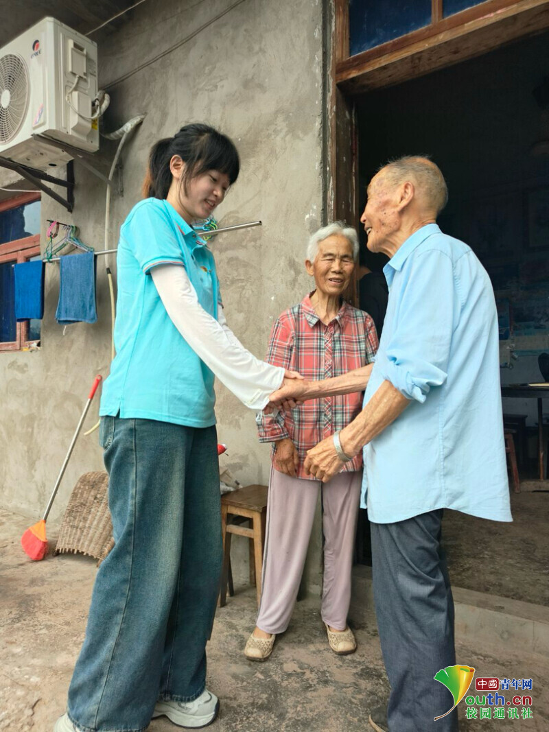 图为实践团成员初到访时向老兵游忠敏问好。张春秀 供图