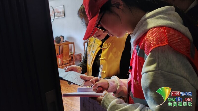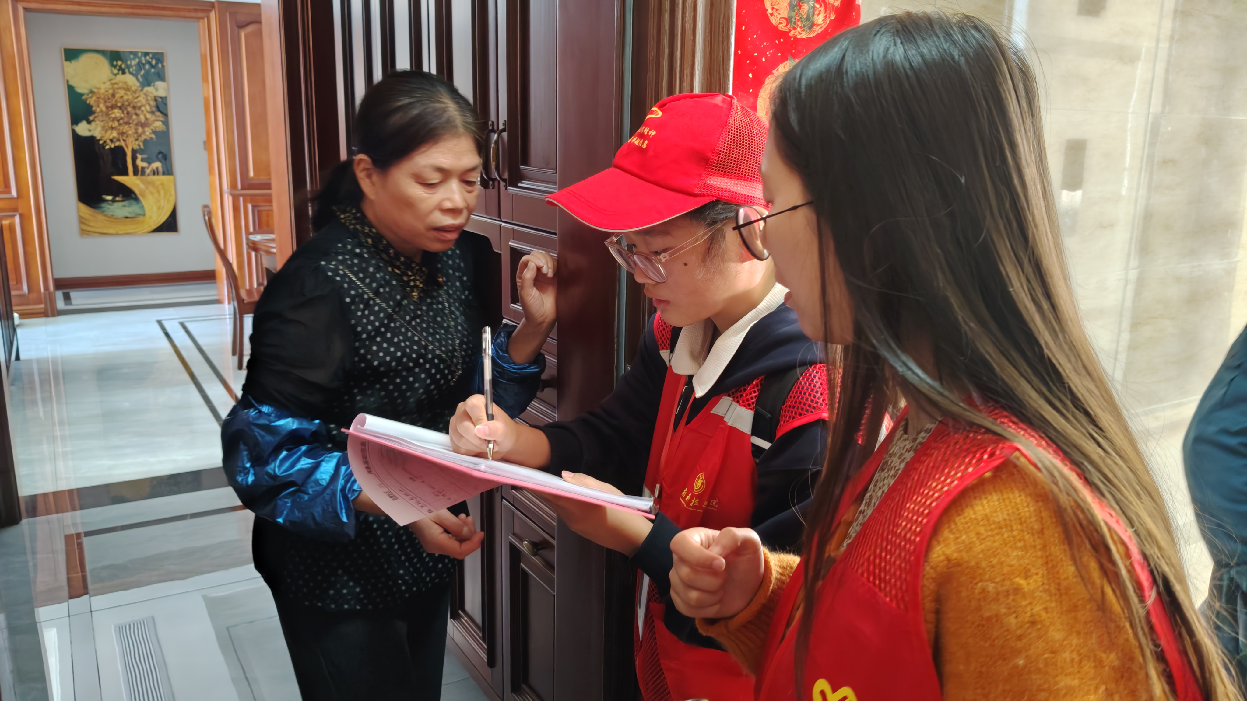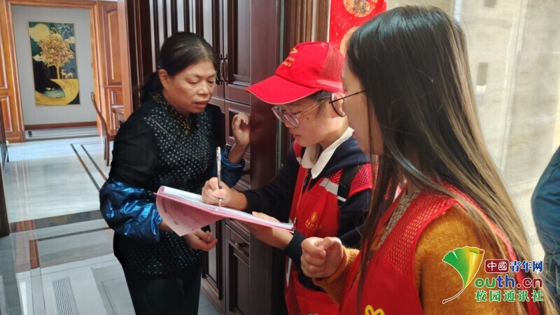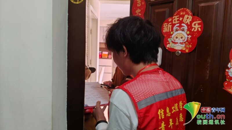 图为青年志愿者们在社区间走访社区居民进行政策宣传。曾昌荣 供图