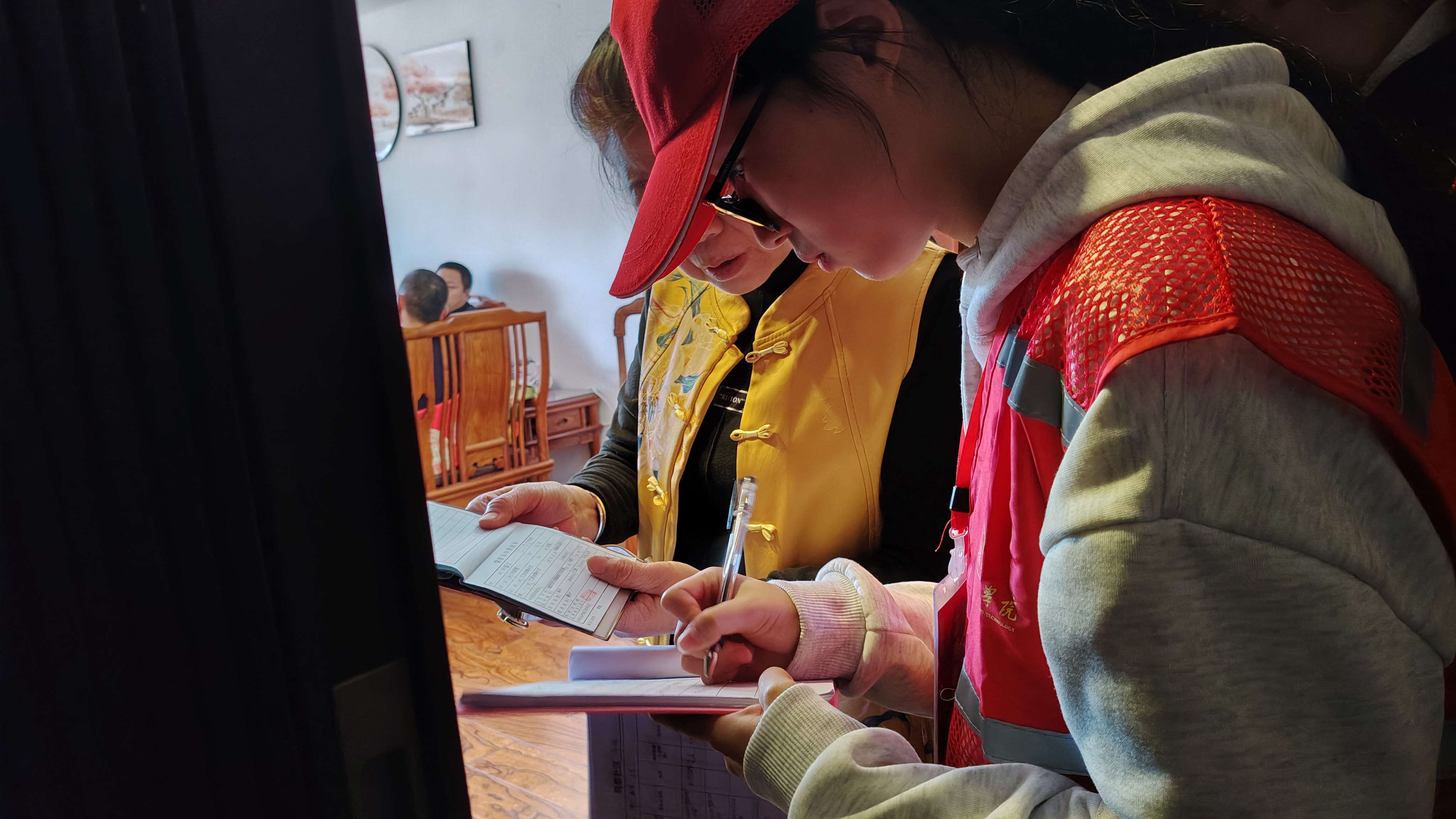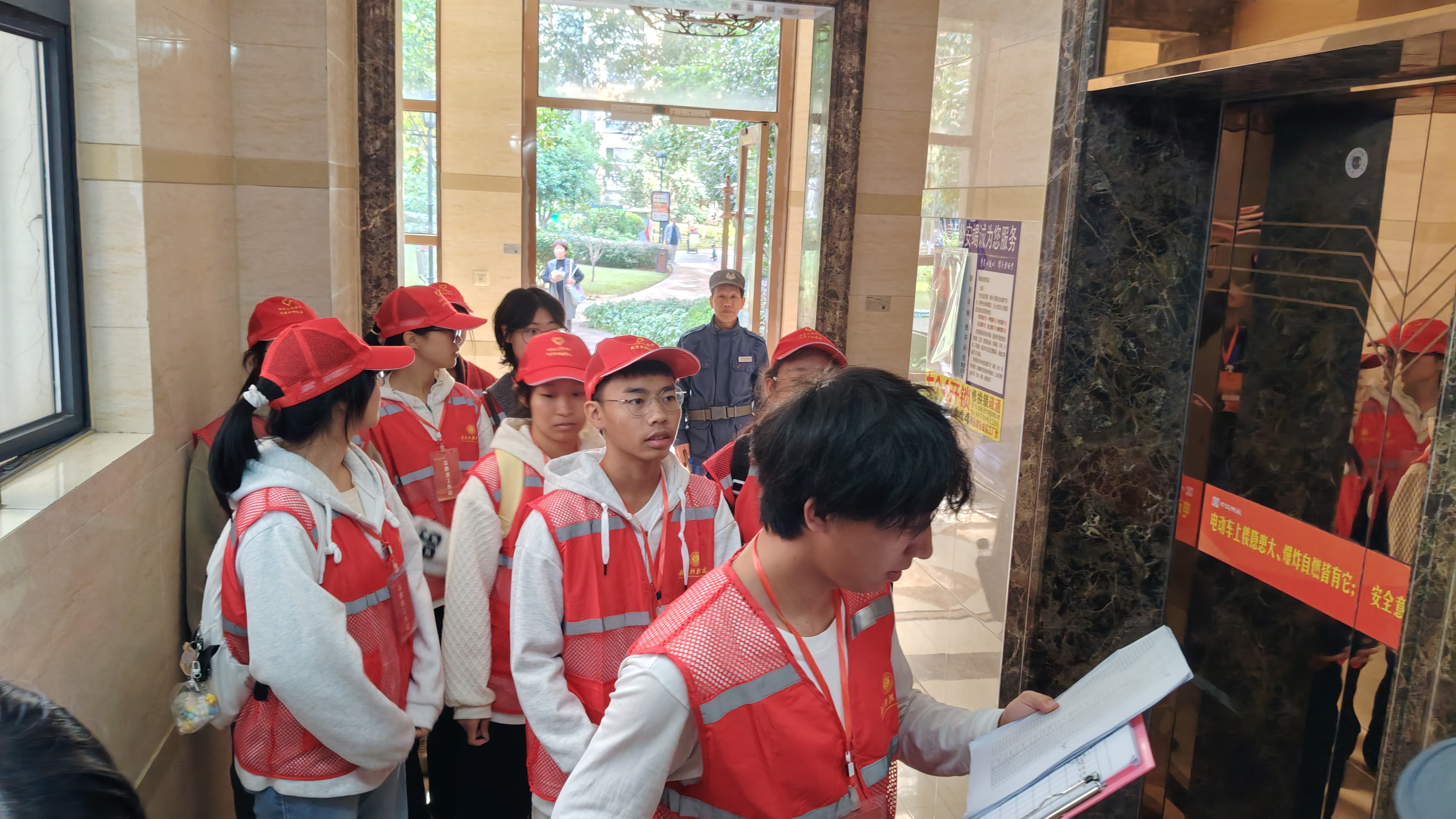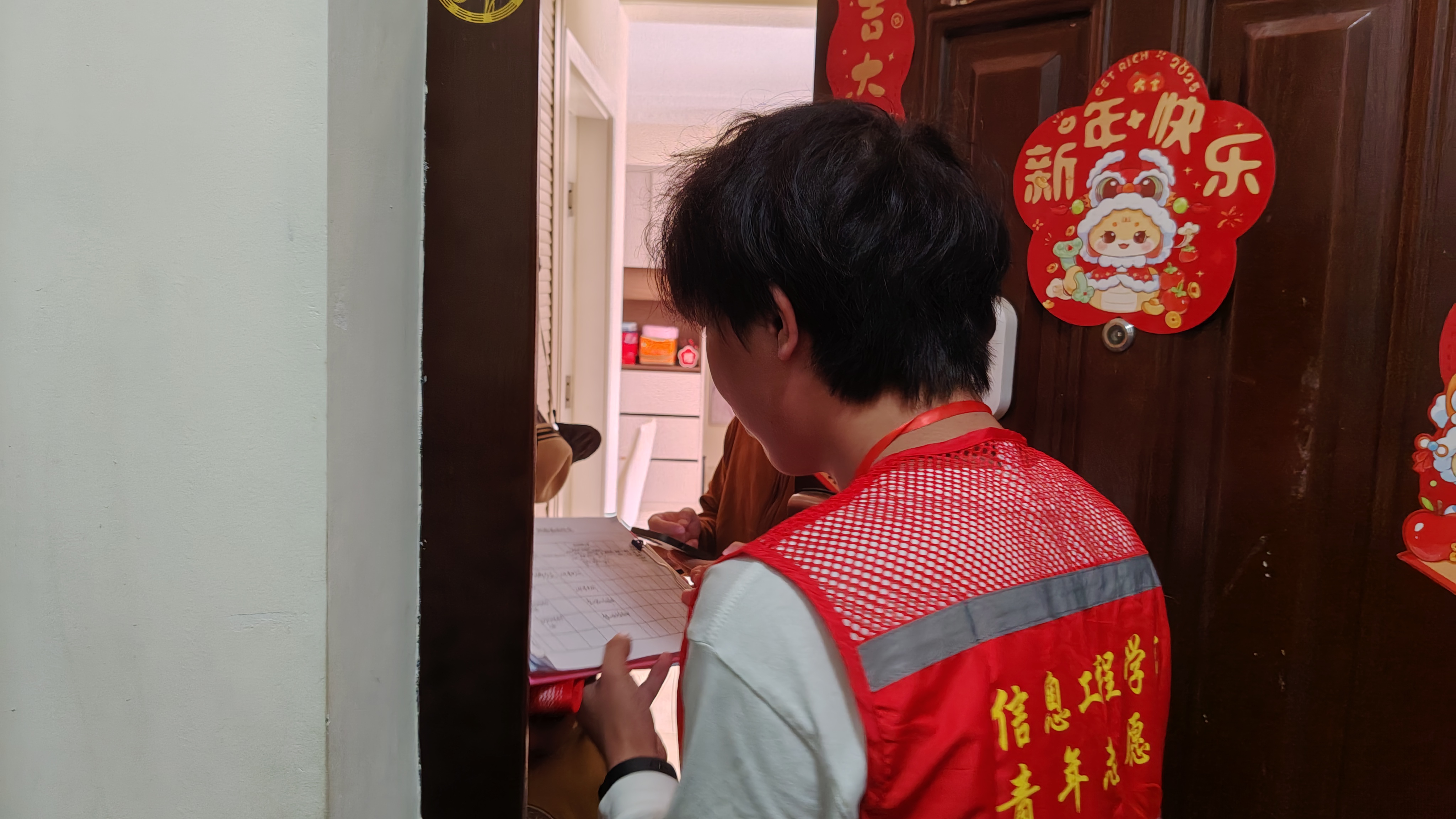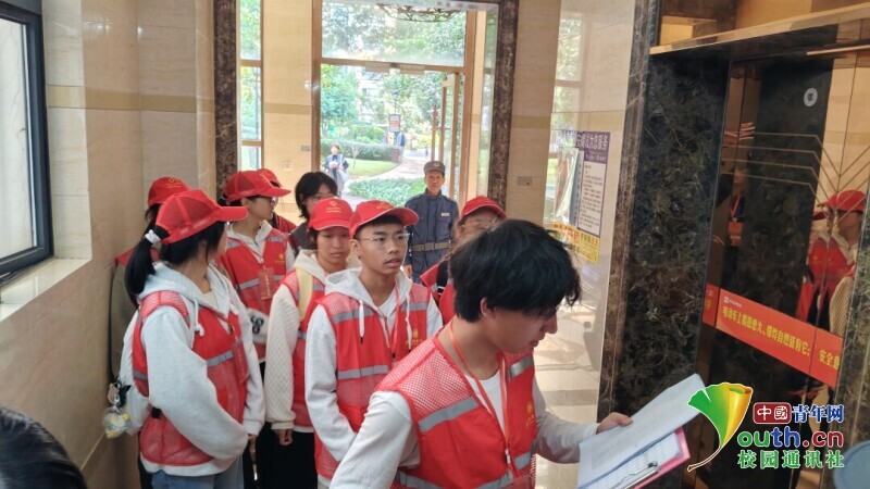 图为青年志愿者们在社区工作人员的协助下进入社区进行政策宣讲。曾昌荣 供图