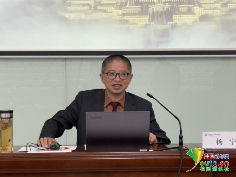 图为杨宁副教授在北京师范大学台州附属高级中学演讲。章燕铃 供图