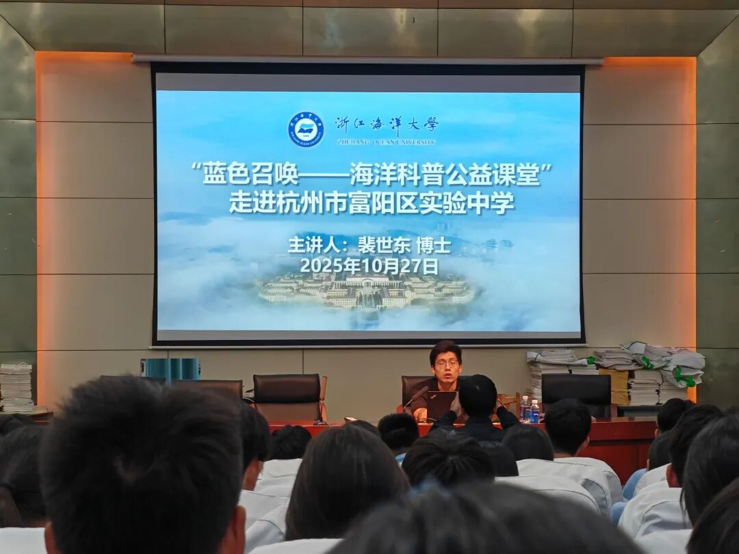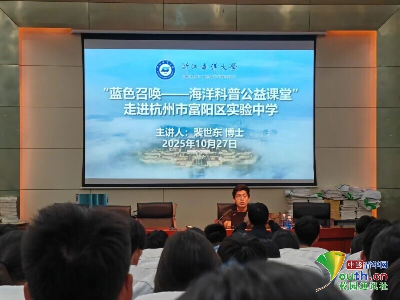 图为裴世东博士在杭州市富阳区实验中学演讲。闫兴康 供图