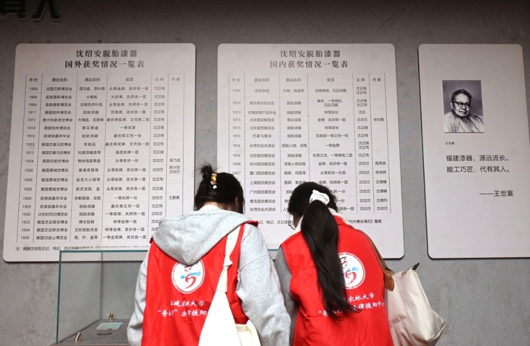 图为中心成员们了解沈绍安脱胎漆器获奖情况。蔡荣敏 供图