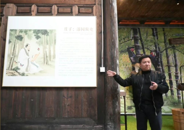 图为梁向明给中心成员们介绍脱胎漆器历史。徐健美 供图