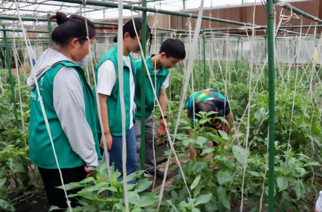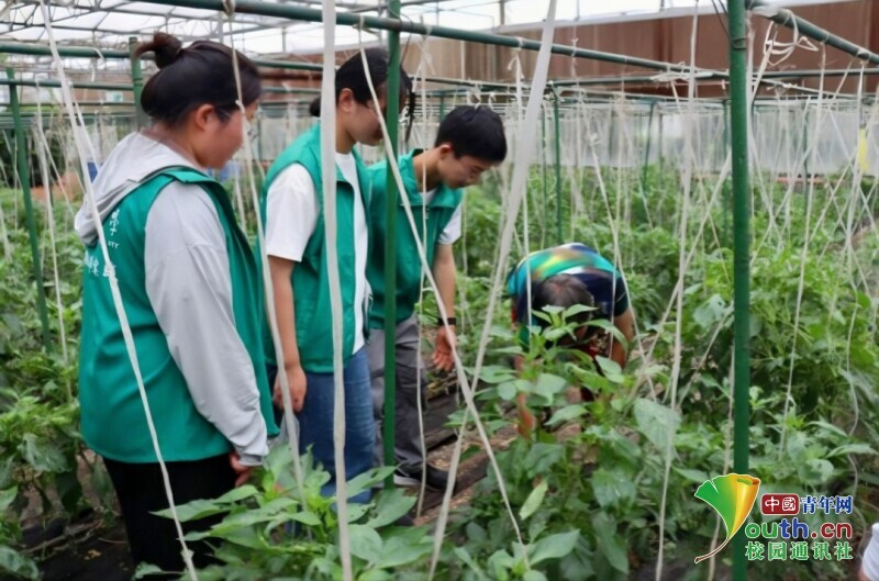 图为实践队员跟随农民进入大棚进行实地学习。中国青年网通讯员 何勰 供图