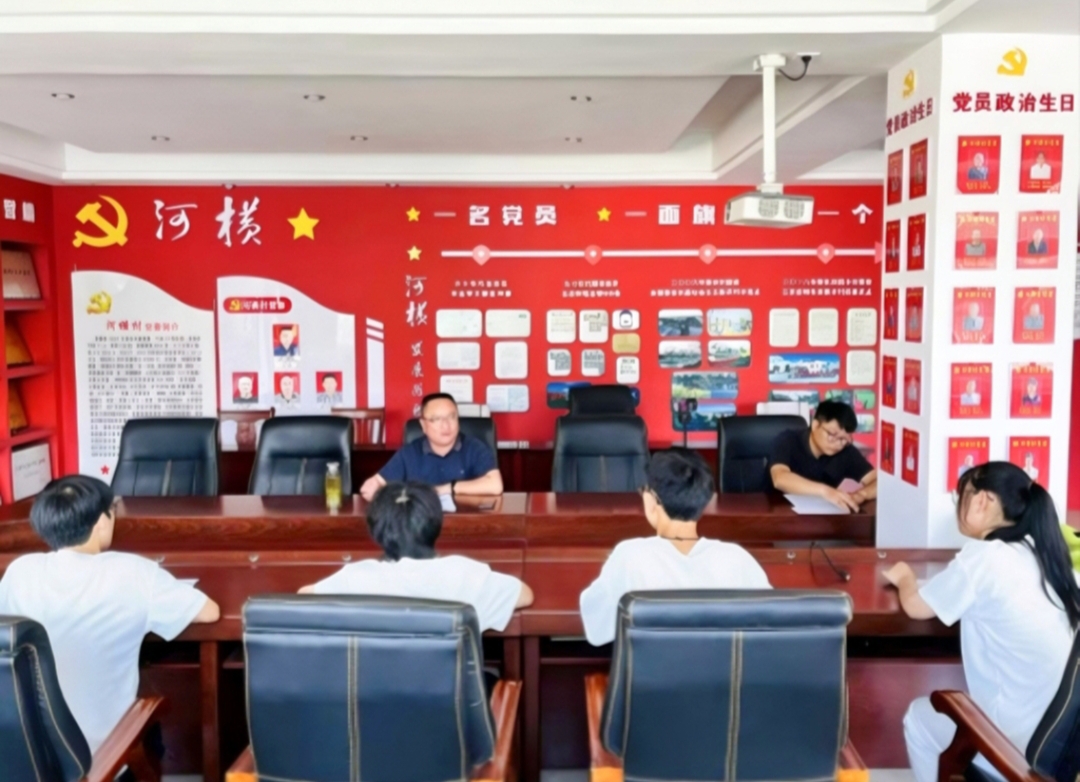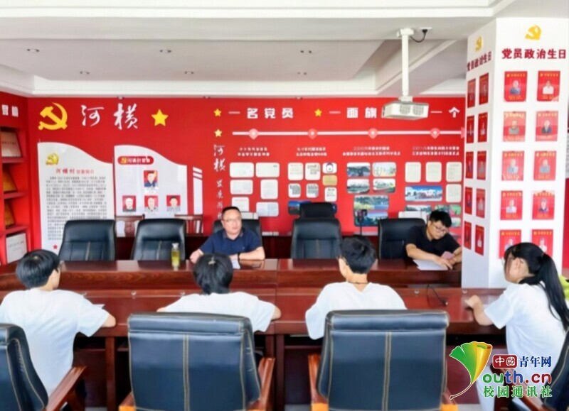 图为实践队队员与河横村村委交流。中国青年网通讯员 何勰 供图