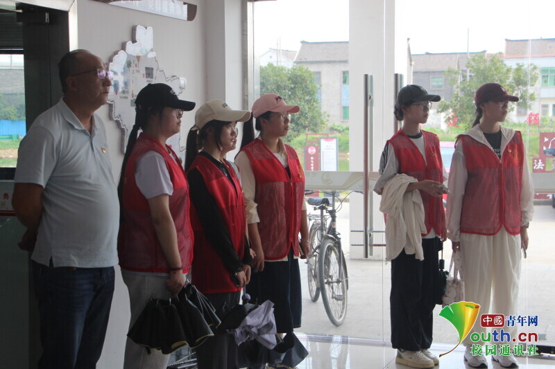 图为队员们以及华山村书记等人聆听,观看华山村的历史故事。孙可馨 供图