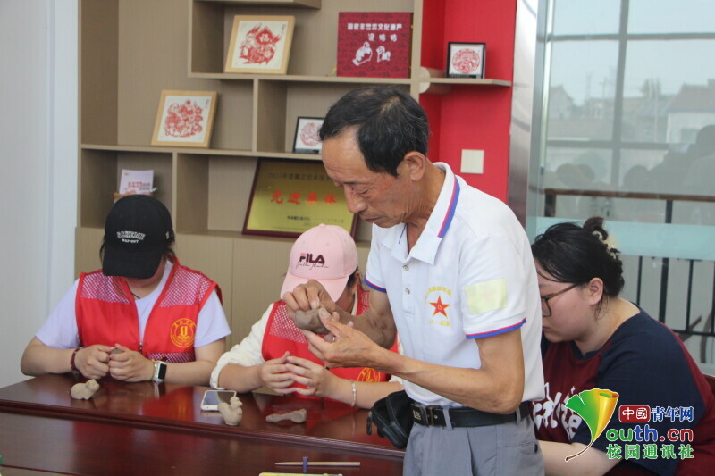 图为实践队员倾听华山泥叫叫非遗传承人蒋信扬老师讲解制作要领。叶东宏 供图