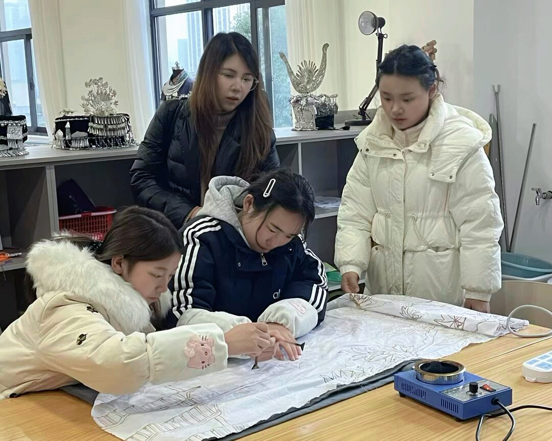织金县中等职业技术学院已将织金苗族蜡染引入服装设计与工艺等相关专业课程,聘请企业导师和非遗传承人担任兼职教师,同时建设了校内实训工坊。该校授课老师提到,受课程课时限制,学生在校学习多停留在技艺体验层面,距离深入掌握核心技艺、理解文化内涵仍然存在差距,且学生在校学习期间,更关注该技能的就业转化前景。