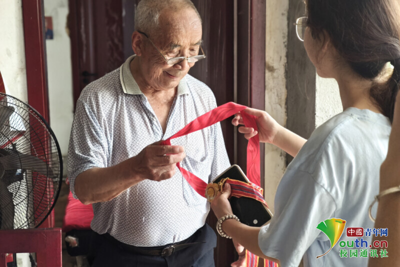 图为邓联珊老人将军功章交给团队成员。张歆培 供图