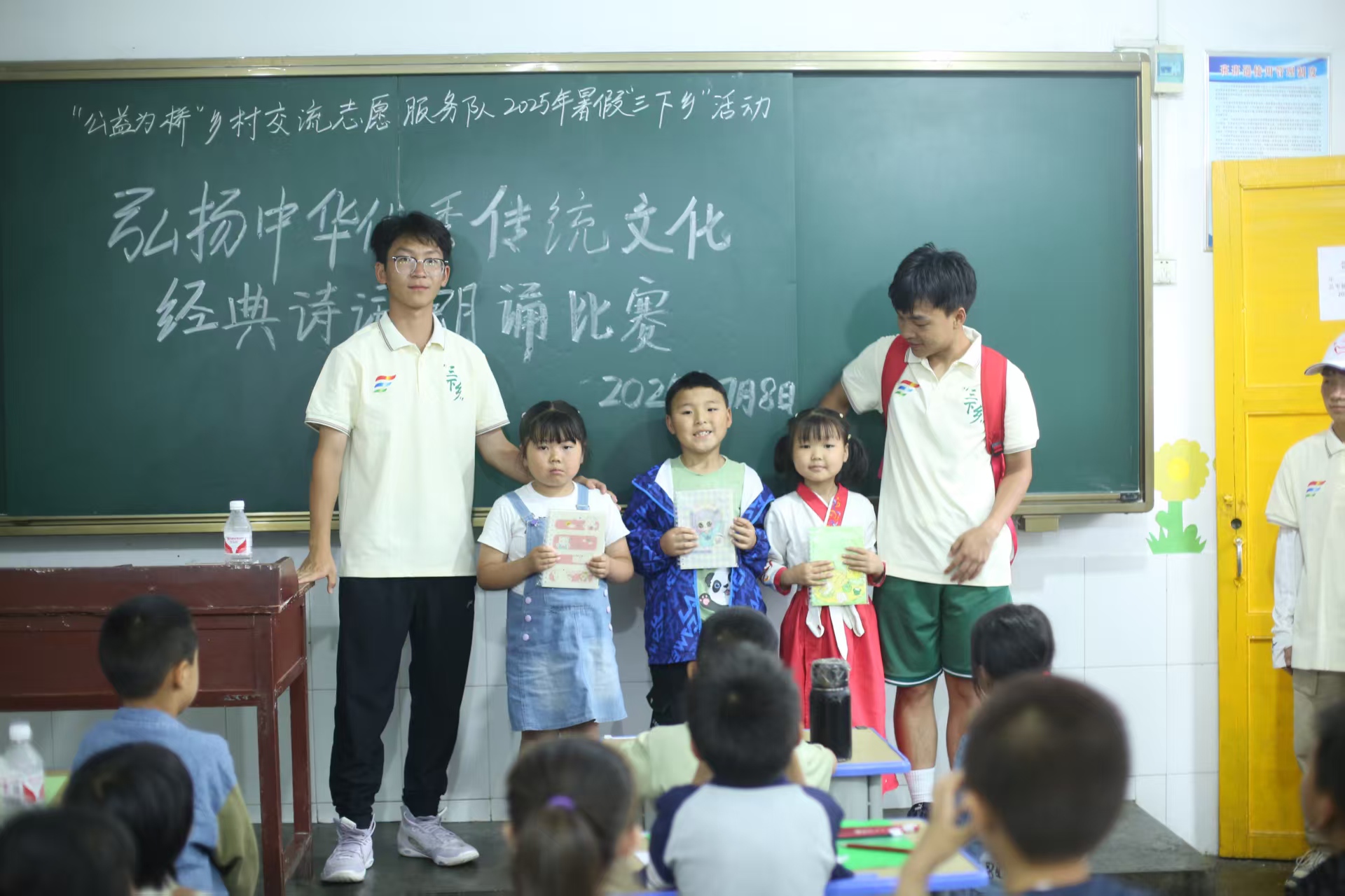 “公益为桥”志愿服务队为诗词朗诵比赛获奖学生颁发奖品。沈长东 供图