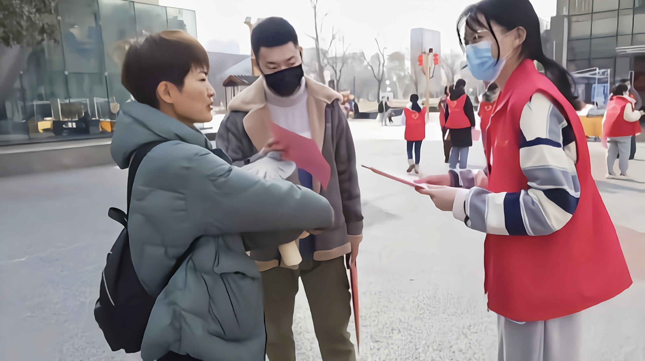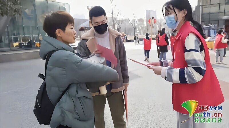 图为留韵传香实践队队员分发弘扬文化宣传单,号召人民参与行动。中国青年网通讯员 马明旭 供图