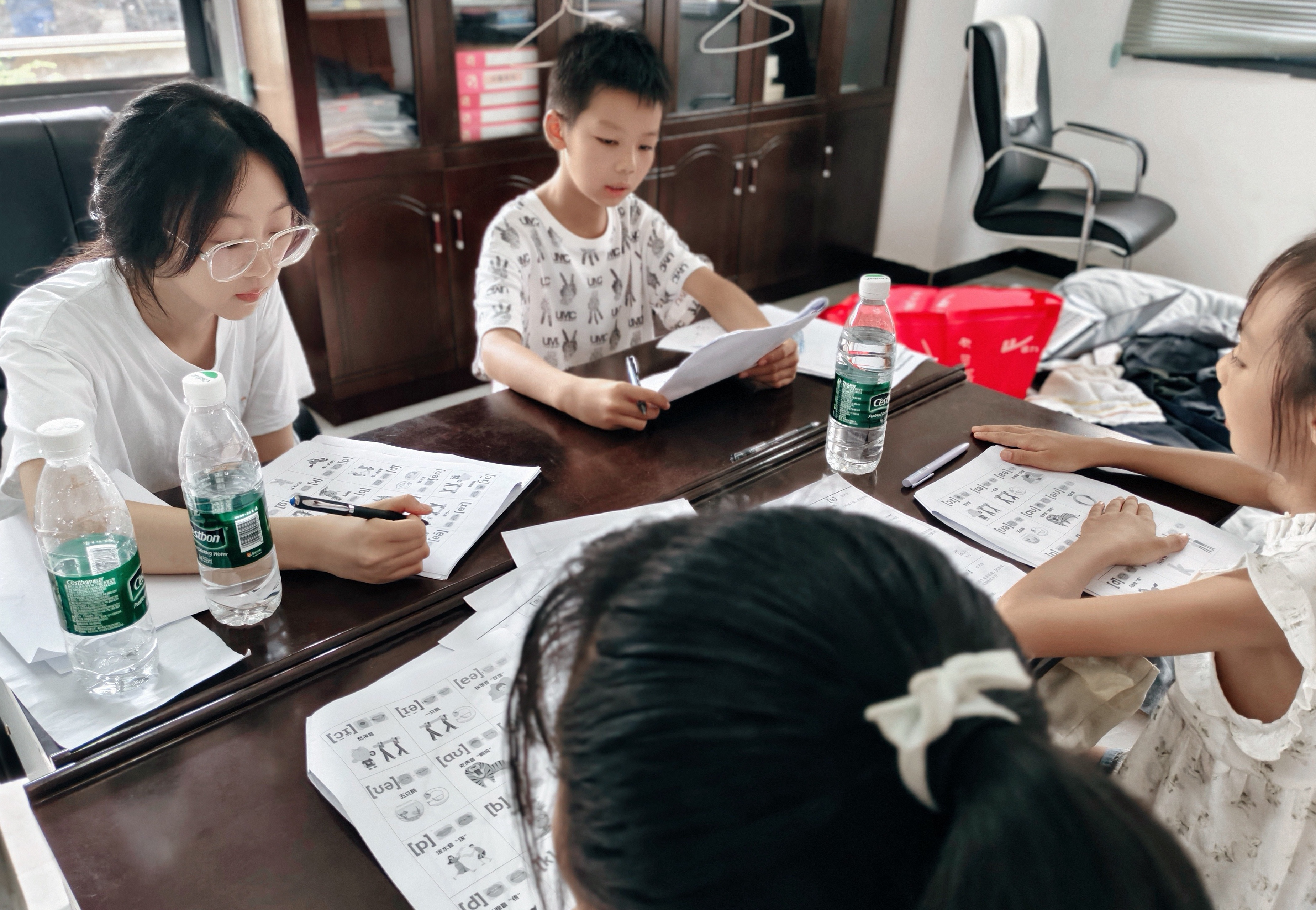 图为团队成员带领学生学习音标。余晓 供图