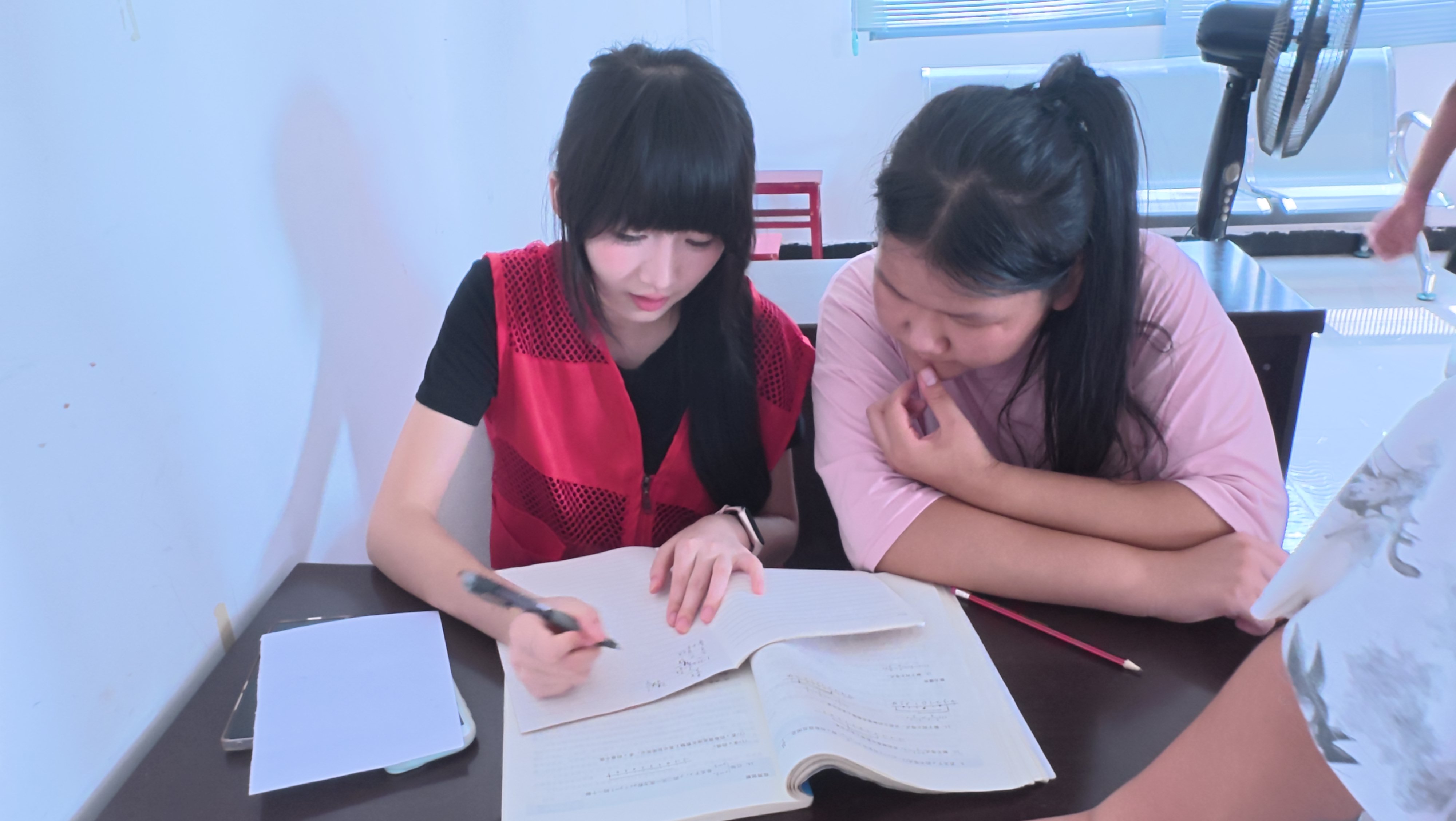 图为团队成员辅导学生写作业。蒋圆 供图
