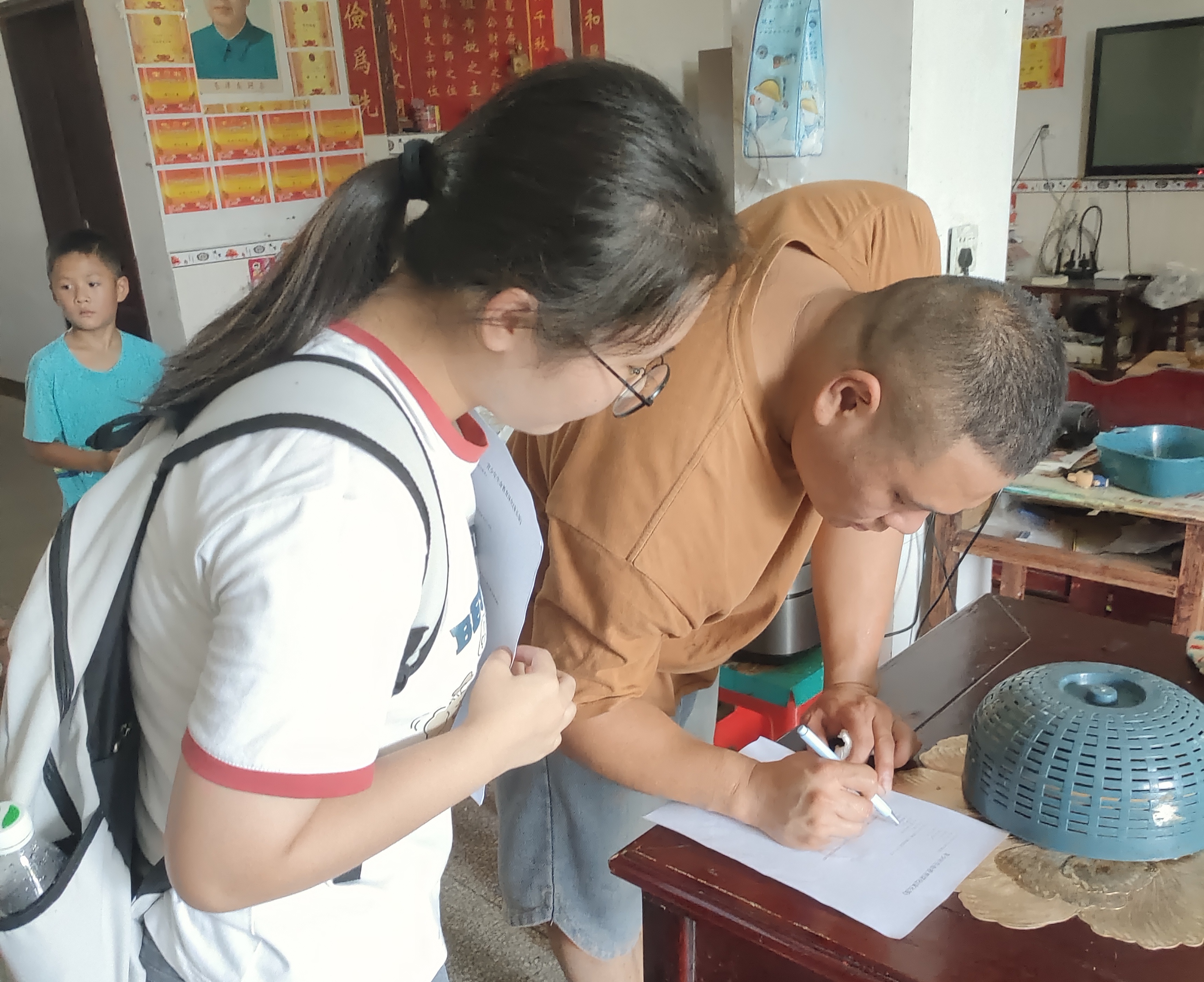 图为团队成员挨家挨户进行问卷调查。肖嘉慧 供图