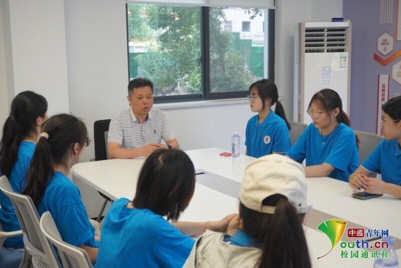图为实践队员对益智园负责人进行深度访谈,探讨红色教育方案。倪佳灵 供图
