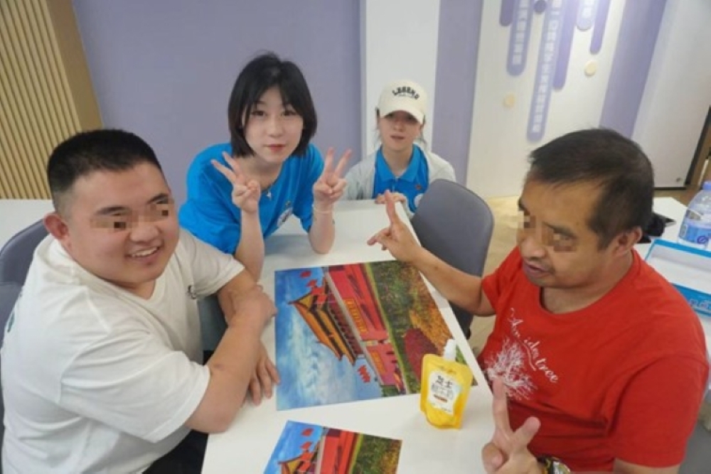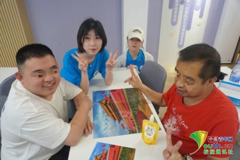 图为实践队员和残疾人朋友展示他们的拼图成果。倪佳灵 供图