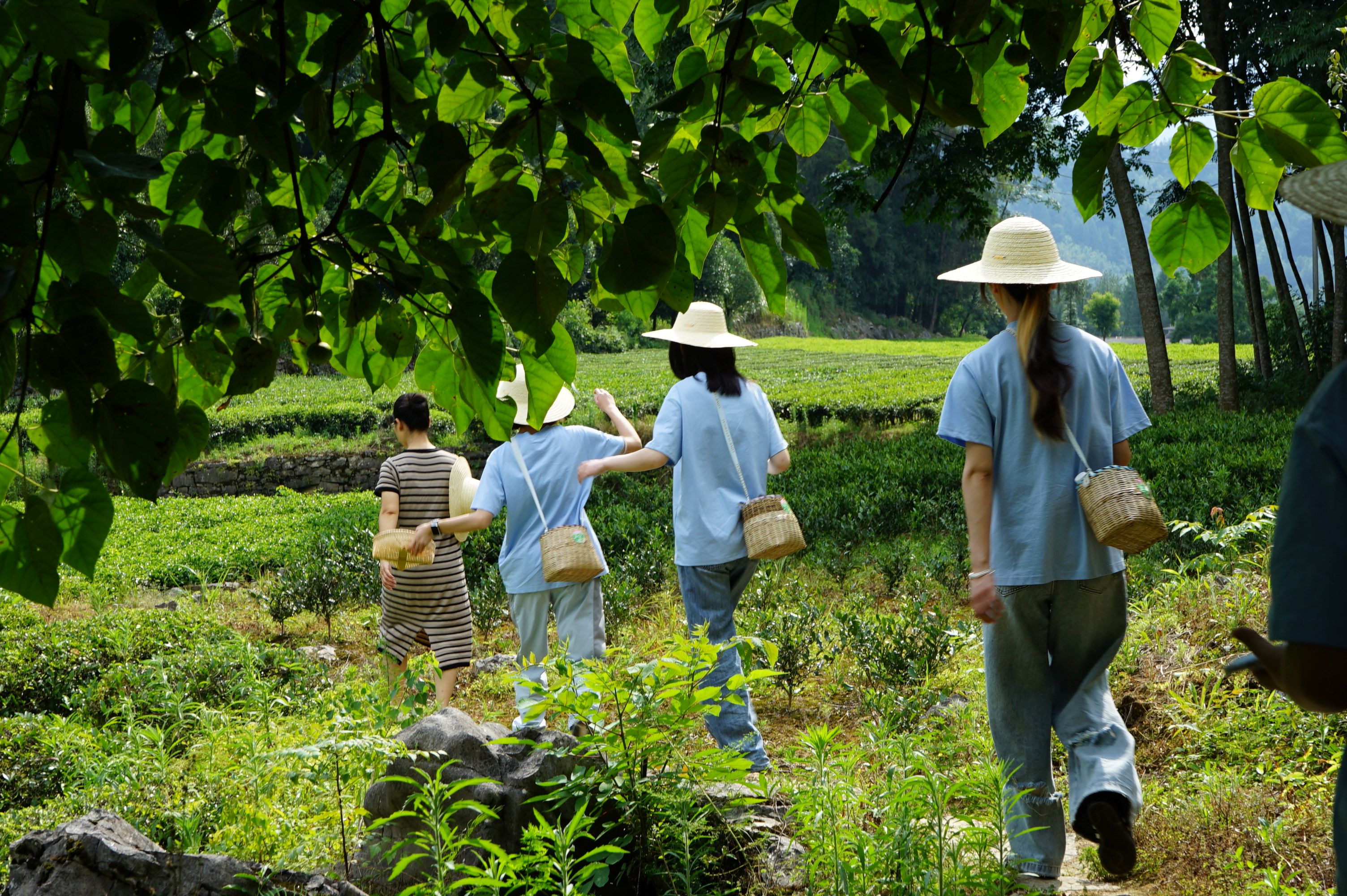 为全面掌握产业全貌,团队还走访了金苔香茶业的制茶车间与茶园管理系统,与茶农一同进行采摘工作,深入了解茶叶种植环节。团队采摘近五小时,每个人竹篓里的鲜叶还不足一斤,汗水顺着额角滴进泥土,后背的衣服早已被汗水浸透。实践队员马艺迅感慨道:“原来喝到嘴里的每一口茶,背后都是这么费工夫的采摘。”队员们真切体会到 "好茶采制难" 的深意。从鲜叶采摘标准到生态种植模式,队员们边看边记,将食品质量管理、绿色生产的专业知识与实际产业现状相对照。