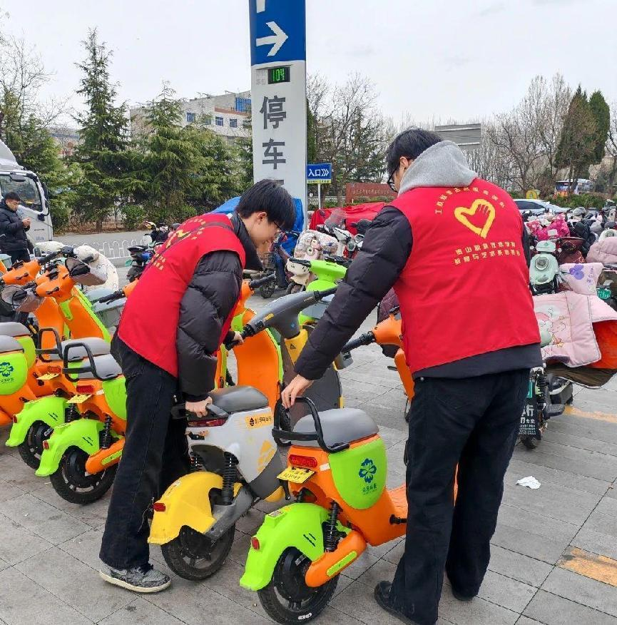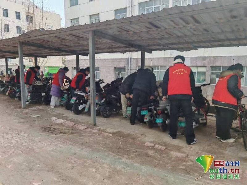 图为志愿者在进行车辆摆放活动。韩悦 杜明露 供图