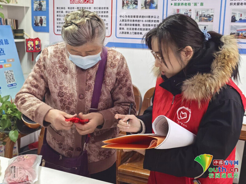 聊到传统习俗,陈奶奶说:“大年初一不能扫地,怕把财气扫跑了;见了人要说‘新年好’,收了红包要道谢。这些规矩都是盼着新的一年平平安安、和和美美。” 一位志愿者用镜头拍摄下老人口述的场景,另一位志愿者记录访谈内容,她说:“奶奶讲得特别细,很多细节我们只在书上看过。记下来,回去想整理成口述故事,回校后与更多同学分享,老人们记得的不仅是习俗,更是那个年代的生活图景。这些记忆不记下来,慢慢就没人知道了。”