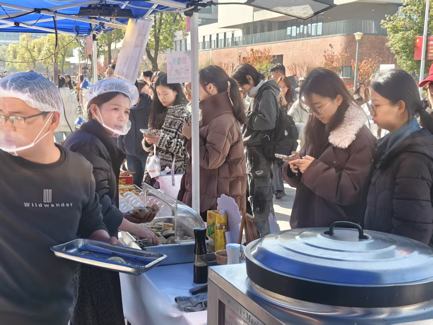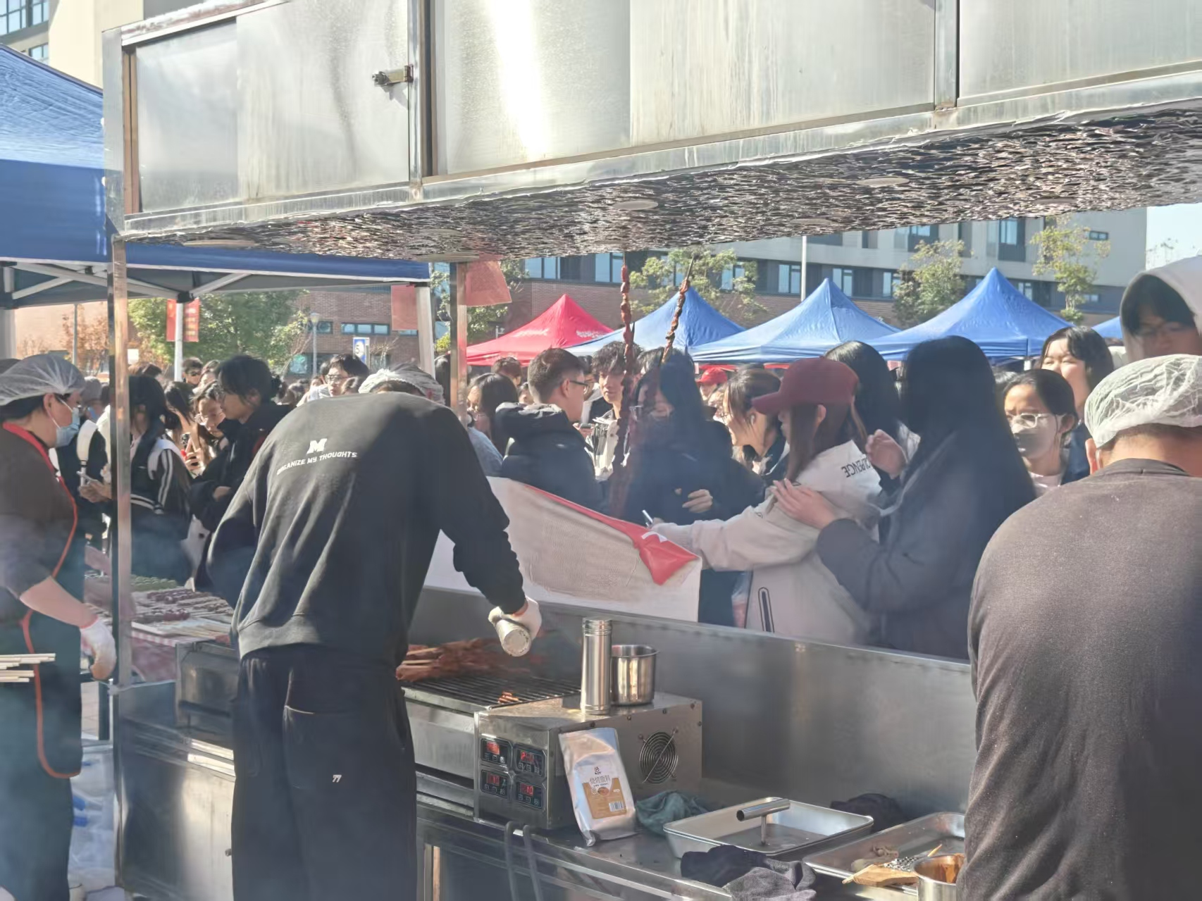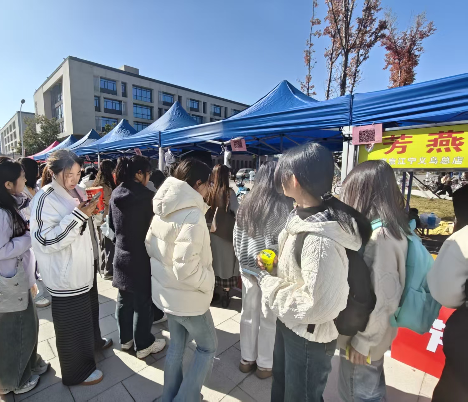 图为排队购买日用品的学生们。刘熠 供图