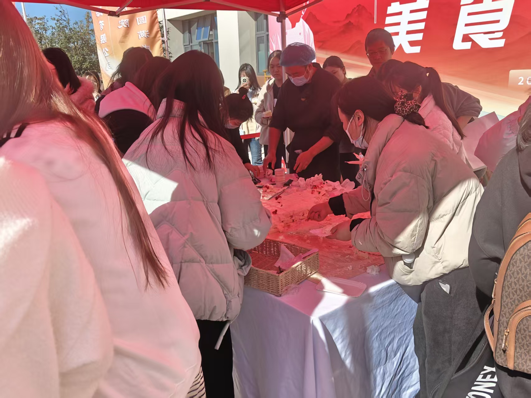 图为欢快参与分蛋糕的学生。刘熠 供图