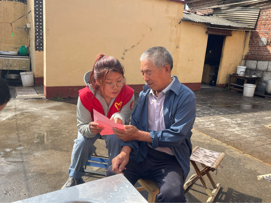 图片为宣讲队志愿者走近附近村民家中,为红叶柿岩景区进行宣传。 中国青年网通讯员 臧运雨 供图