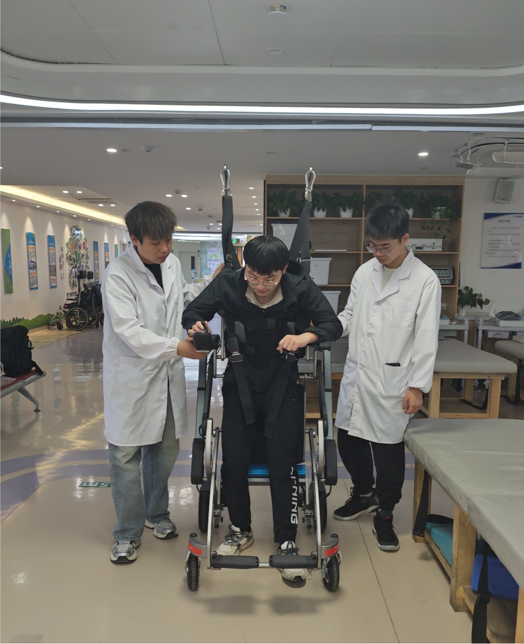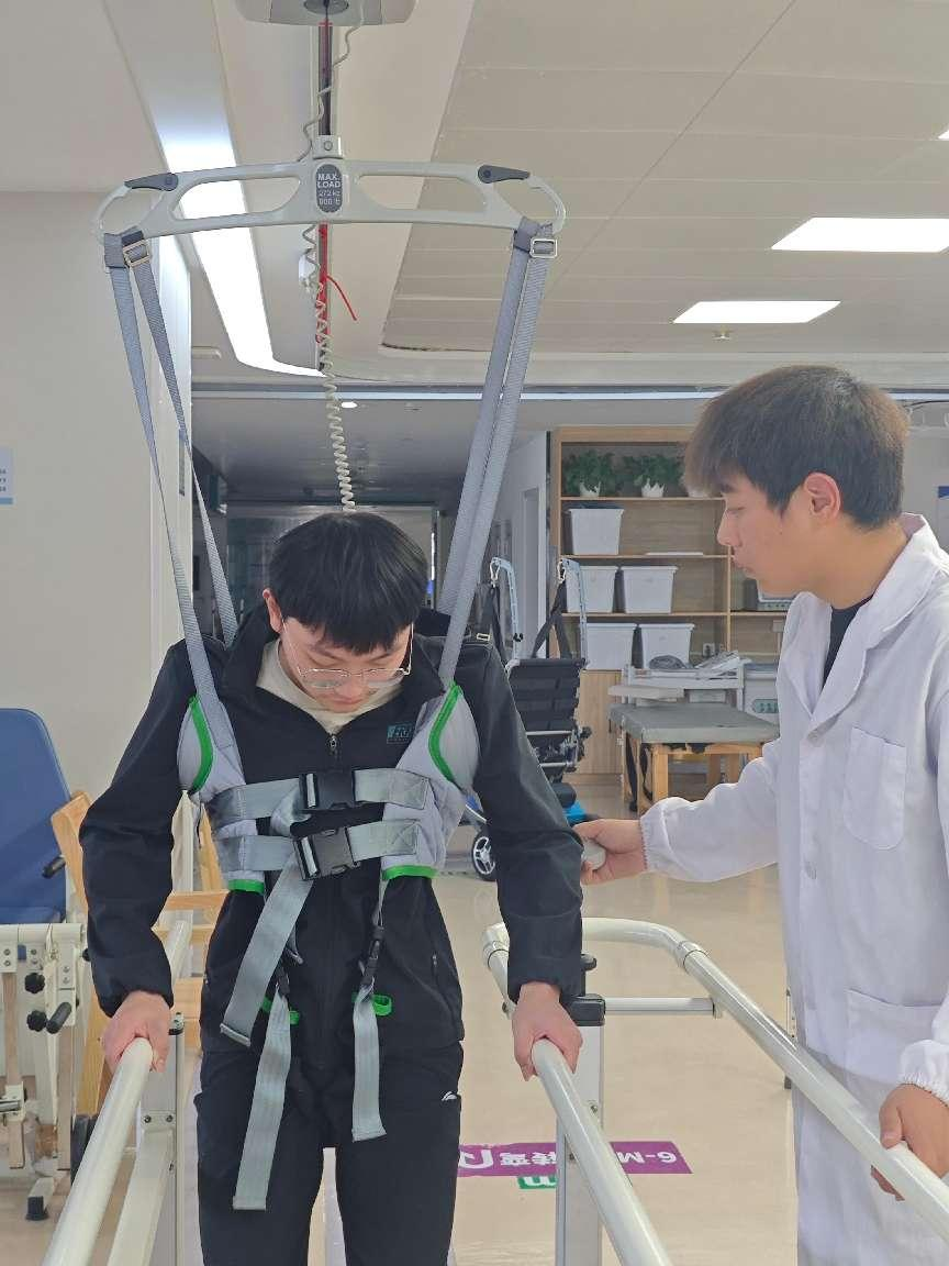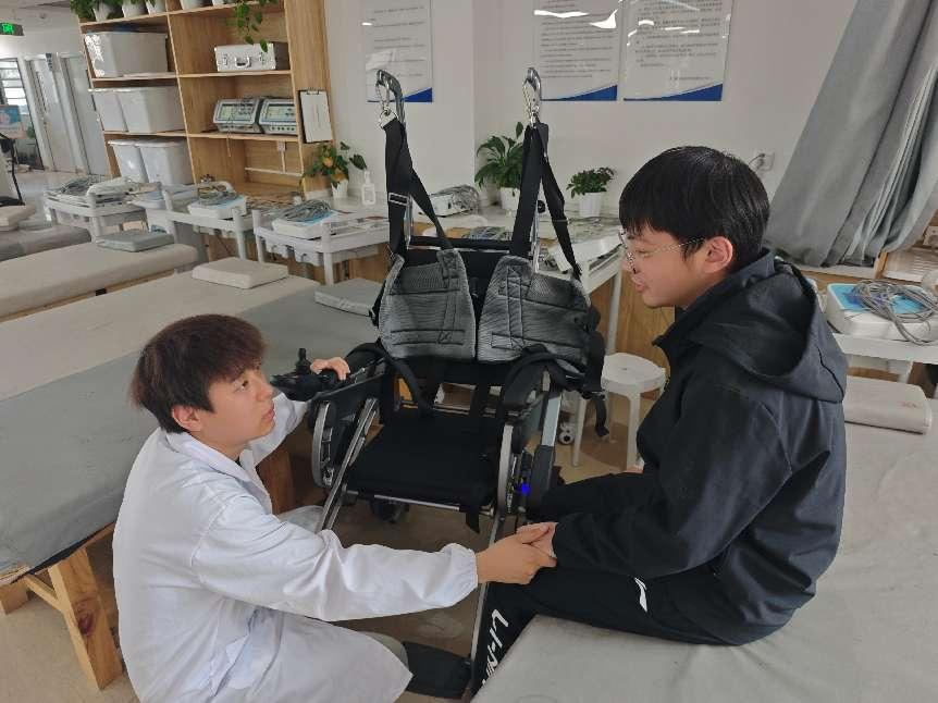 图为团队成员为患者介绍电动移位机以及康复训练注意事项。潘筱睿 供图