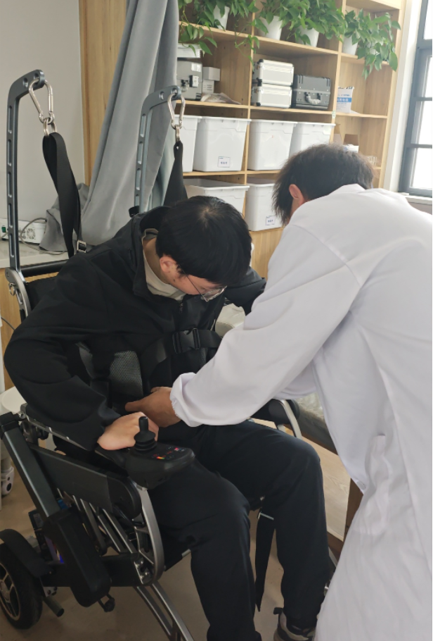 图为团队成员为患者固定电动移位机。潘筱睿 供图