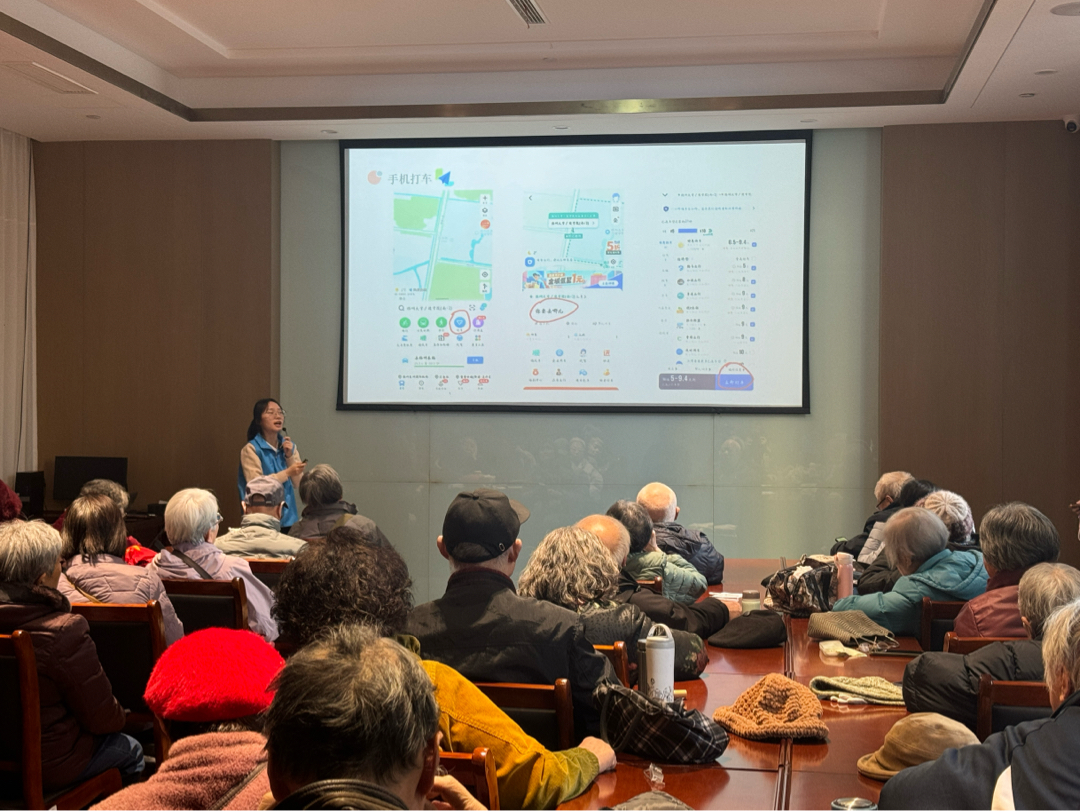 实践第二天,数字助老课堂准时开讲,由团队成员周书屹主讲智能手机实用操作。聚焦长辈们日常出行、消费、生活缴费等需求,细致讲解滴滴打车、微信支付、水电燃气缴费、手机挂号等实用操作。针对老年人接受能力缓慢的特点,他采用“反复讲解+一对一讲解”的方式,将复杂的操作流程拆解成简单易懂的步骤,手把手带着老人们逐一点击、操作,耐心解答每一个疑问。“终于学会怎么用手机打车了,以后出门再也不用麻烦别人了!”张爷爷成功完成演示打车操作后,开心地说道。队员们围在老人们身边,及时纠正操作误区、化解操作难题,用耐心和细心帮助长辈们跨越“数字鸿沟”,享受智能生活带来的便捷与美好。