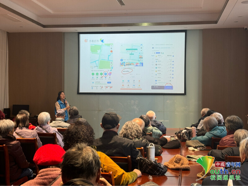 图为团队成员周书屹指导老人学习智能手机打车操作。丁梦晗 供图