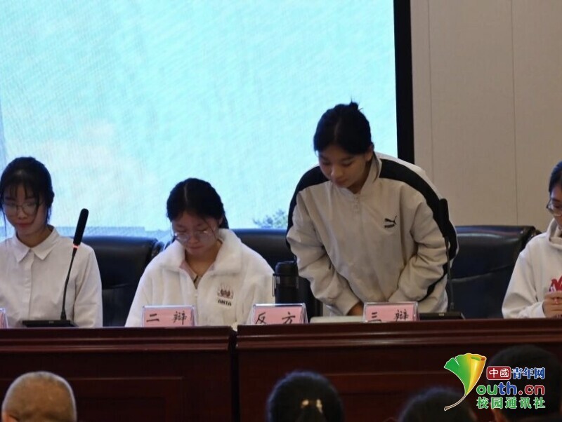 图为反方三辩发言,以现代医学技术的高速发展为中心,质问正方医德对于治疗的作用。中青网通讯员 蒋昊燃 摄