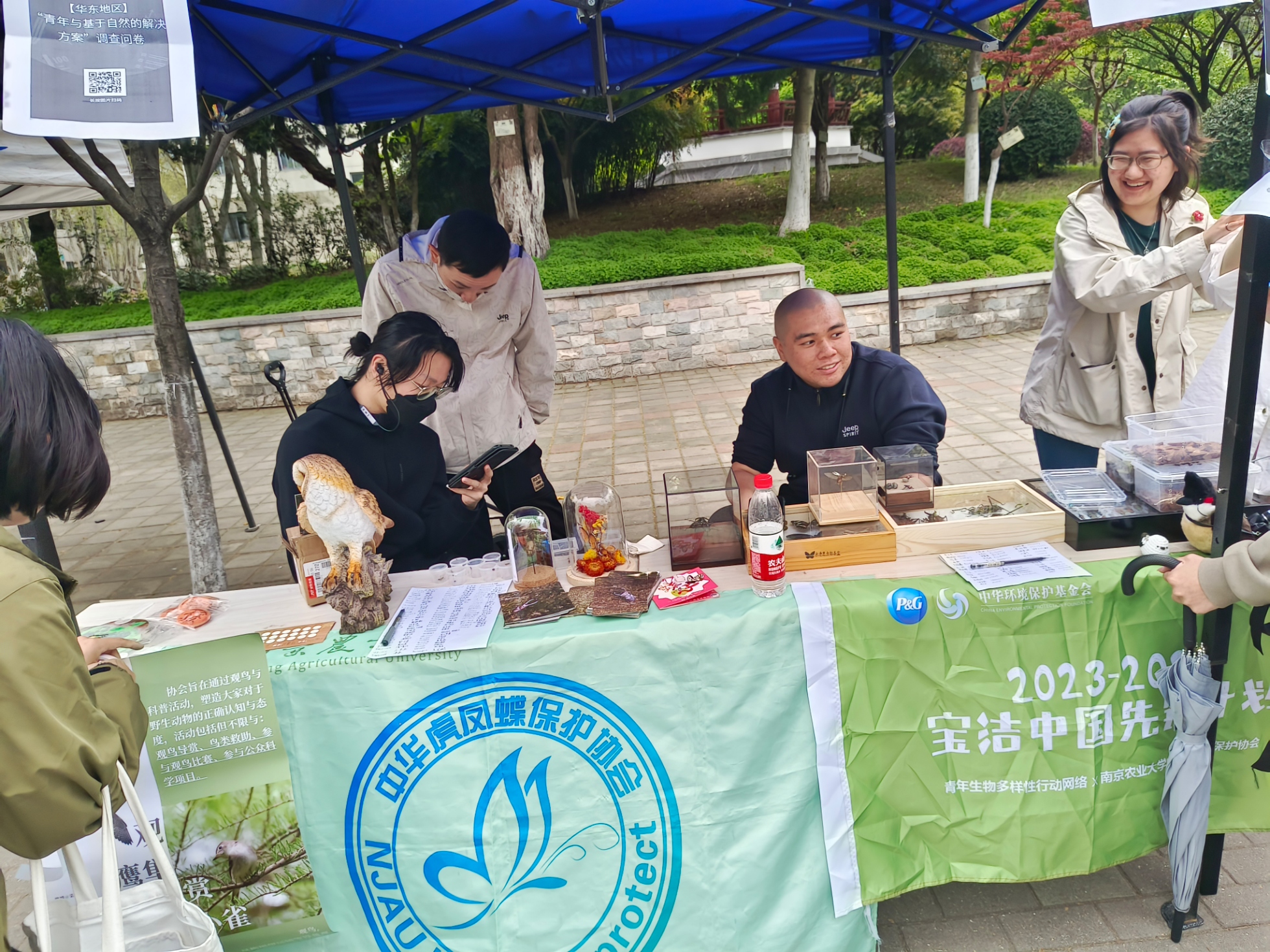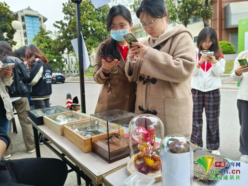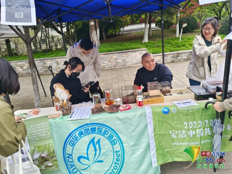 图为虎协摊位展示的昆虫标本以及正在填写问卷的同学。中国青年网通讯员 徐宗祥 供图