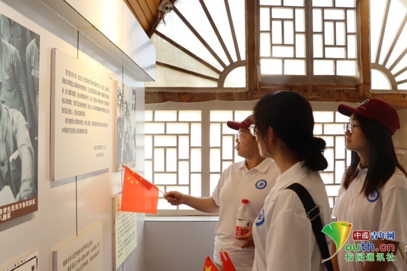 图为“奔延安,寻红色记忆,筑青春之梦”党史学习教育团于枣园革命旧址向退伍老党员了解革命年代的军人、党员的奋斗故事。中国青年网通讯员 王秋力 供图