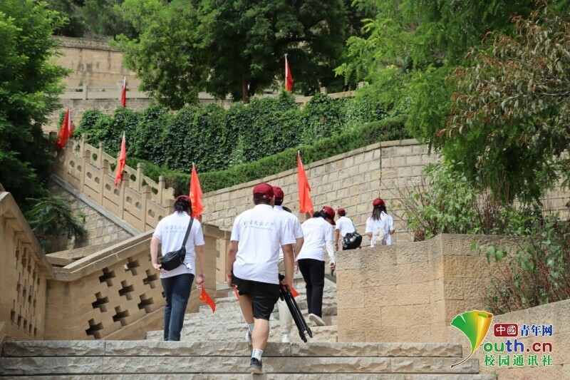图为“奔延安,寻红色记忆,筑青春之梦”党史学习教育团登宝塔山,寻红色足迹。中国青年网通讯员 合嘉豪 供图