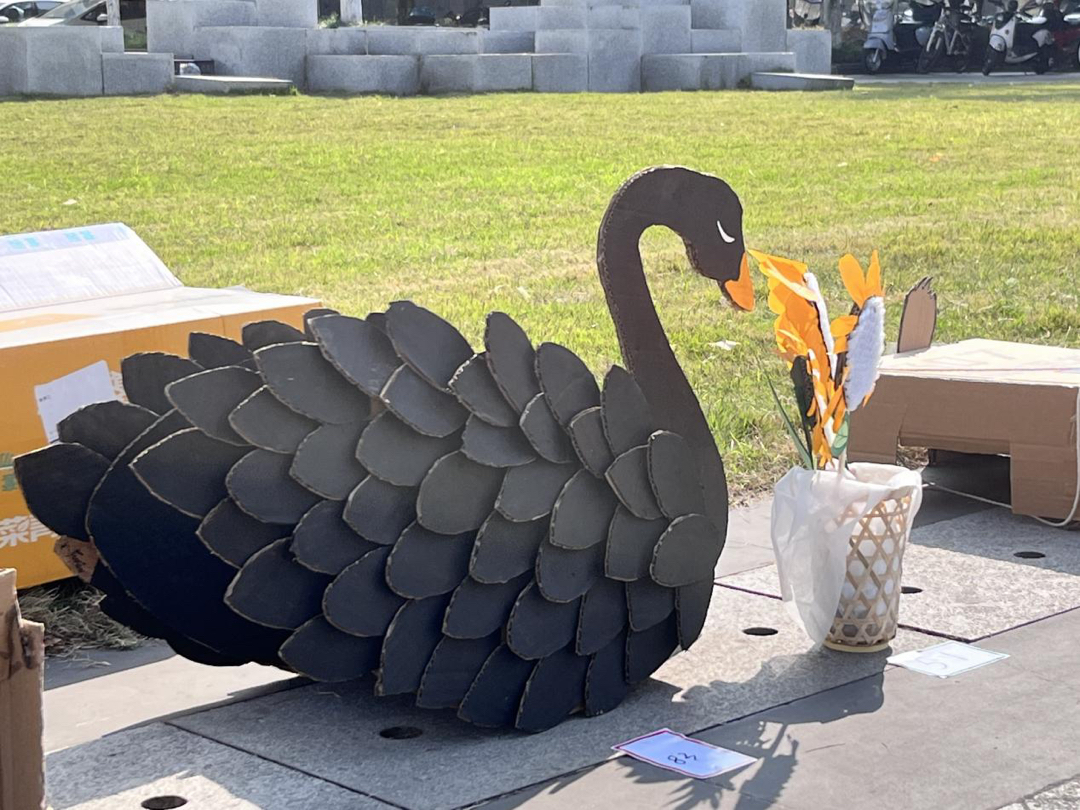 仅700多只国家二级保护动物大天鹅每天就需要投食玉米多达250斤,由农学和产品设计专业同学共同制作的纸天鹅寄托着农学学子希望保障未来粮食产量的美好向往以及产品设计学子对于大天鹅躯体结构构造的欣赏。中国青年网通讯员 赵思琪 摄