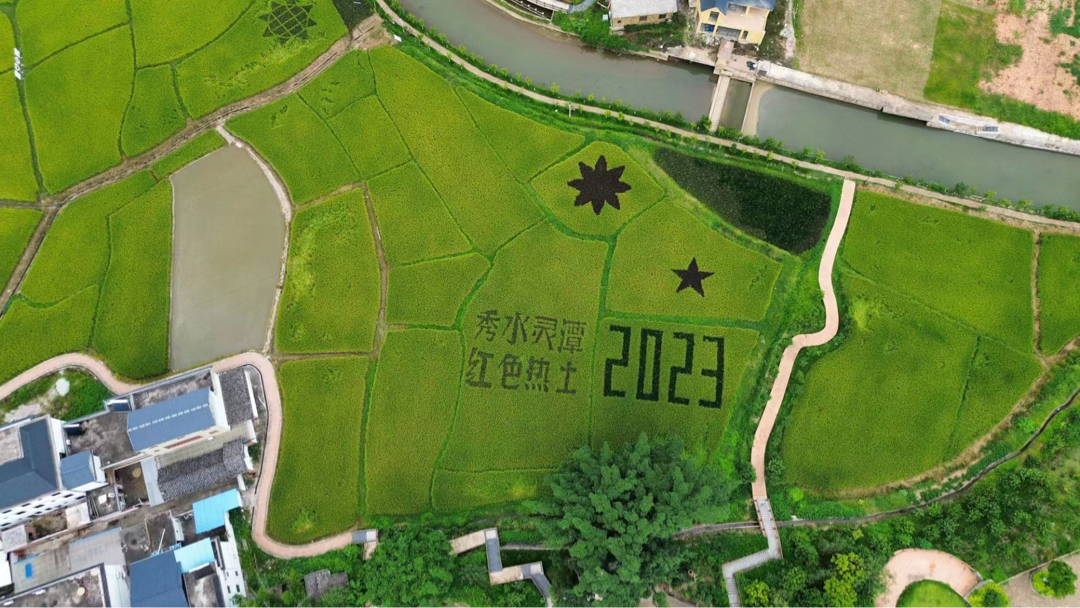 图为灵潭村稻田画——“2023秀水灵潭,红色热土”。中国青年网通讯员 宋佳怡 供图
