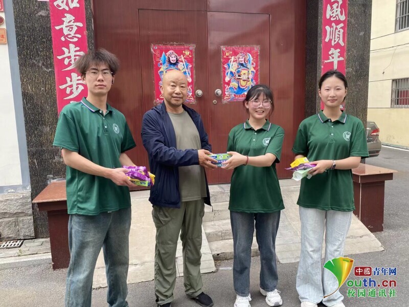 图为带队老师带领团队成员进行实地走访,村民填写调查问卷,向村民捐赠物资。赵佳 供图