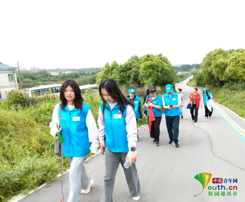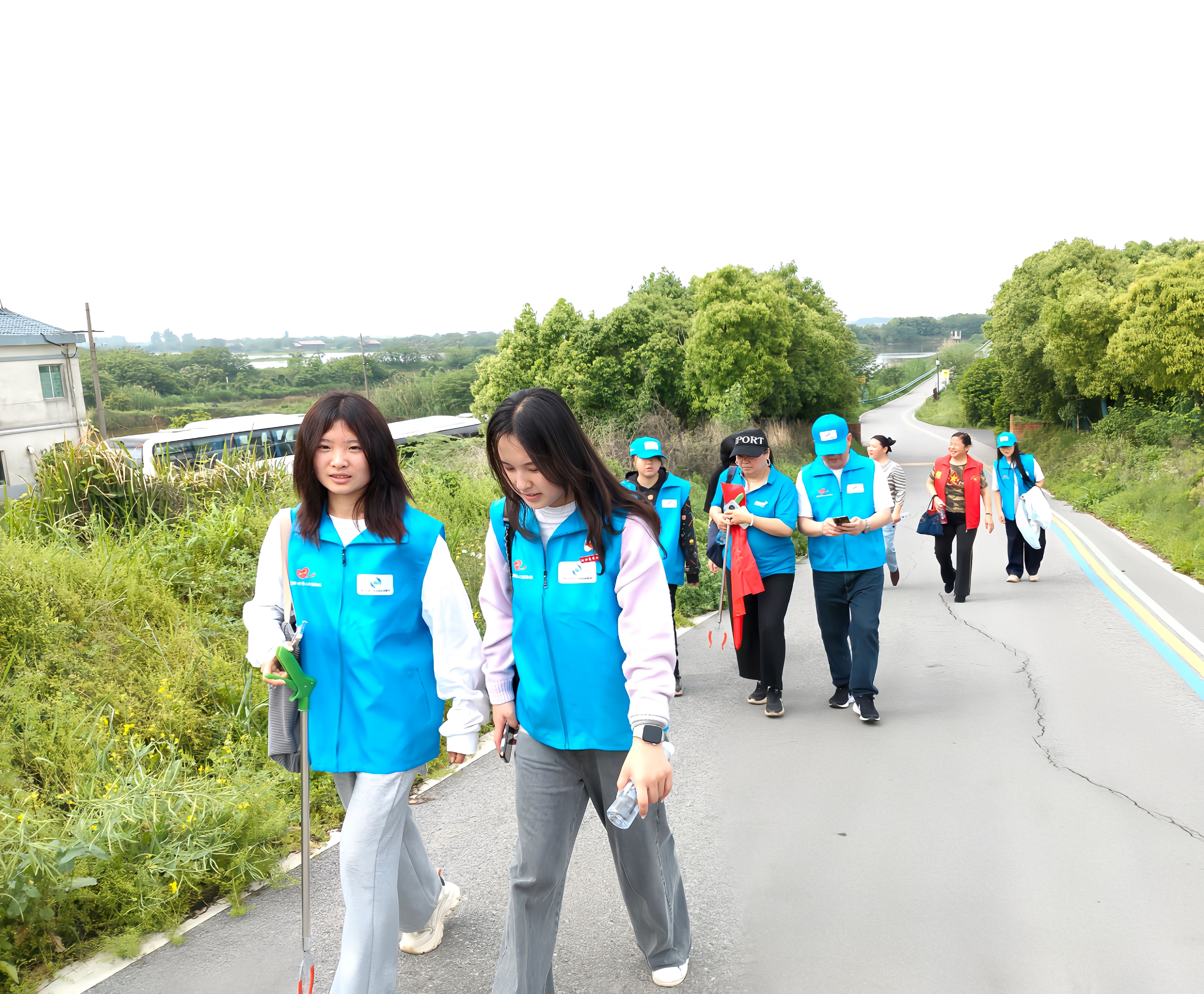 图为志愿者步行前往活动地途中。叶依凡 供图